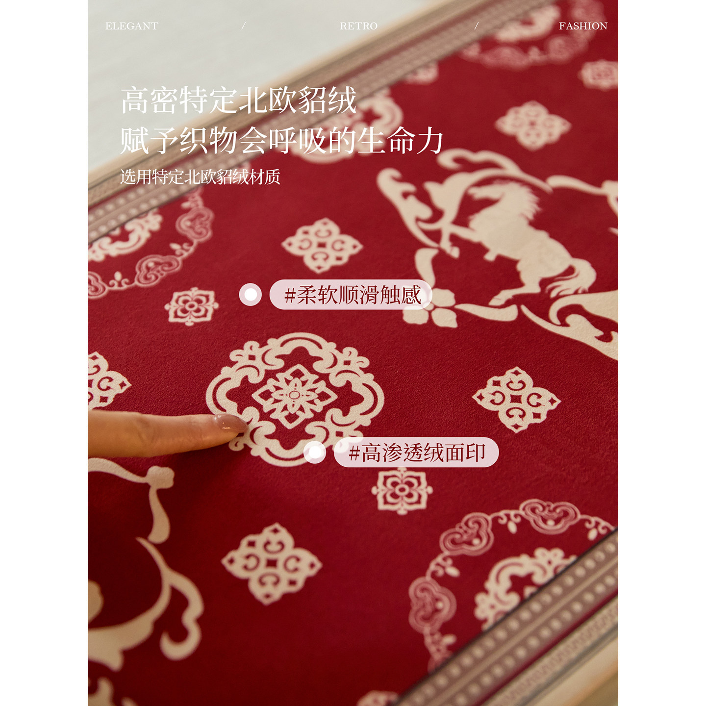 【新年礼物】蜡笔派「马上有福」骏程如意桌旗轻奢红色茶几盖布W