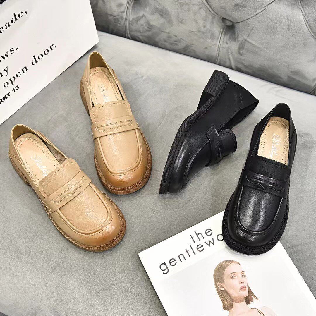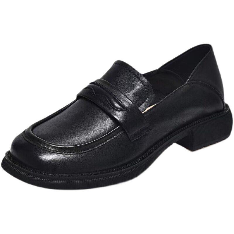 真皮英伦风小皮鞋女鞋子2025春秋新款潮乐福鞋黑色平底单鞋豆豆鞋