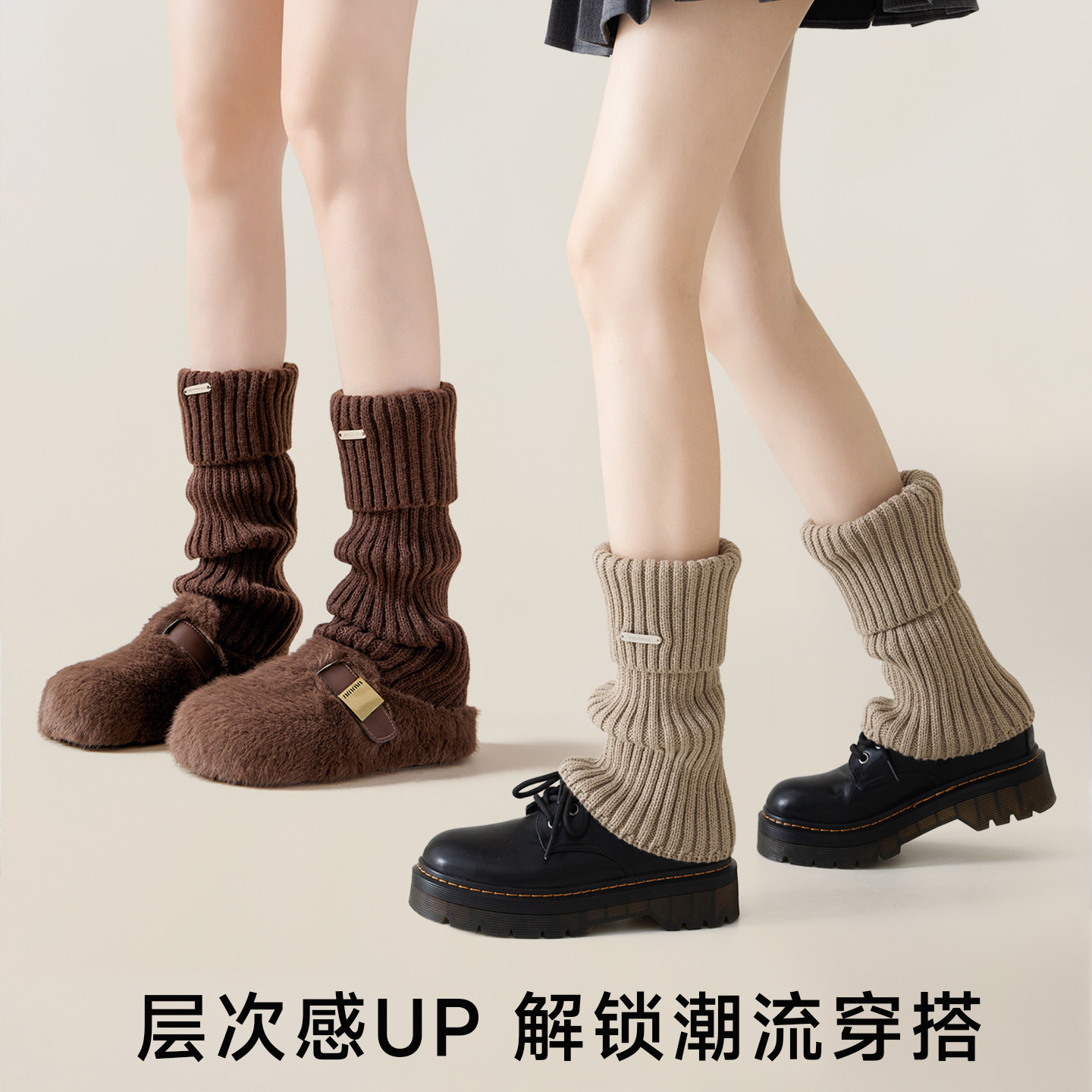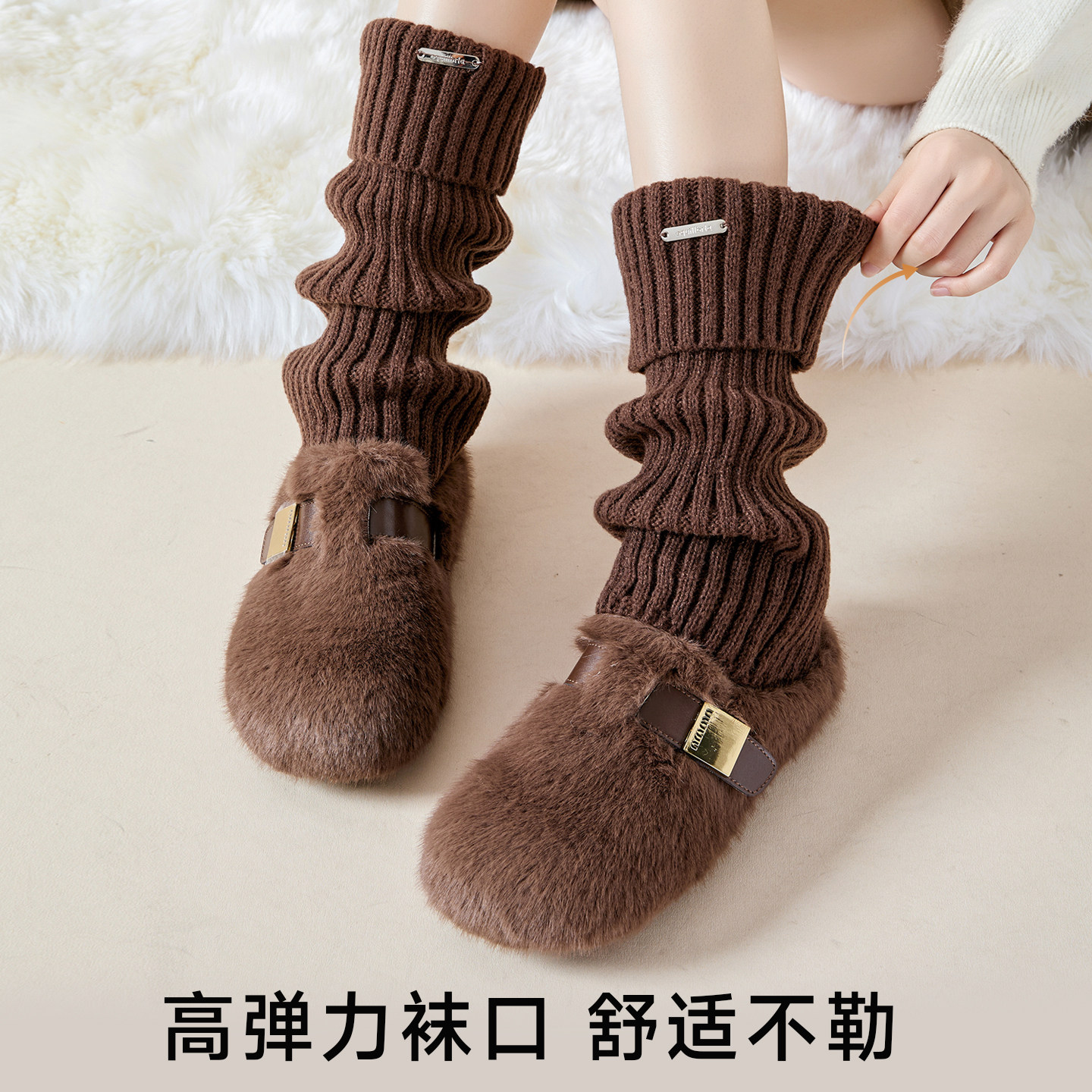 【金属标】堆堆袜套女秋冬加厚保暖咖色腿套y2k中筒袜子显瘦新款