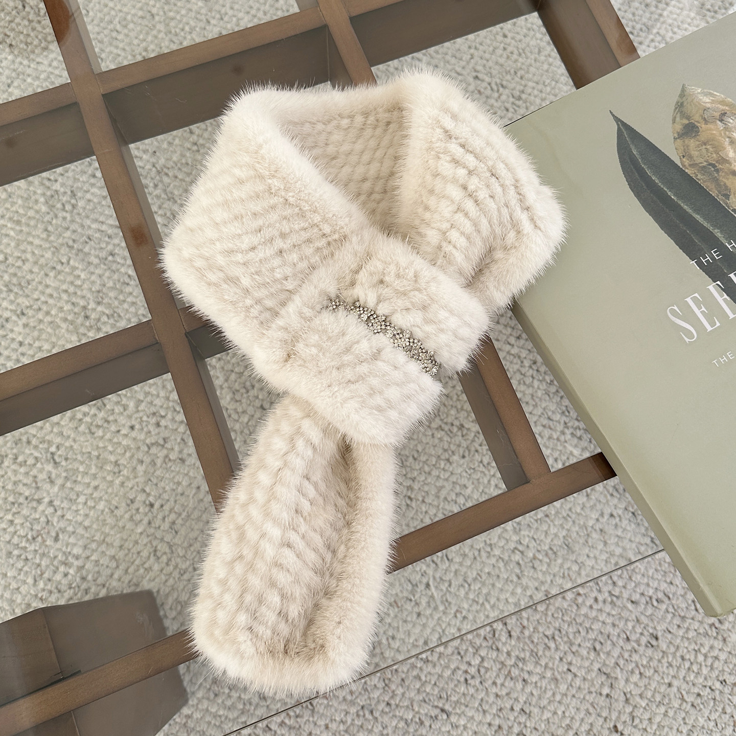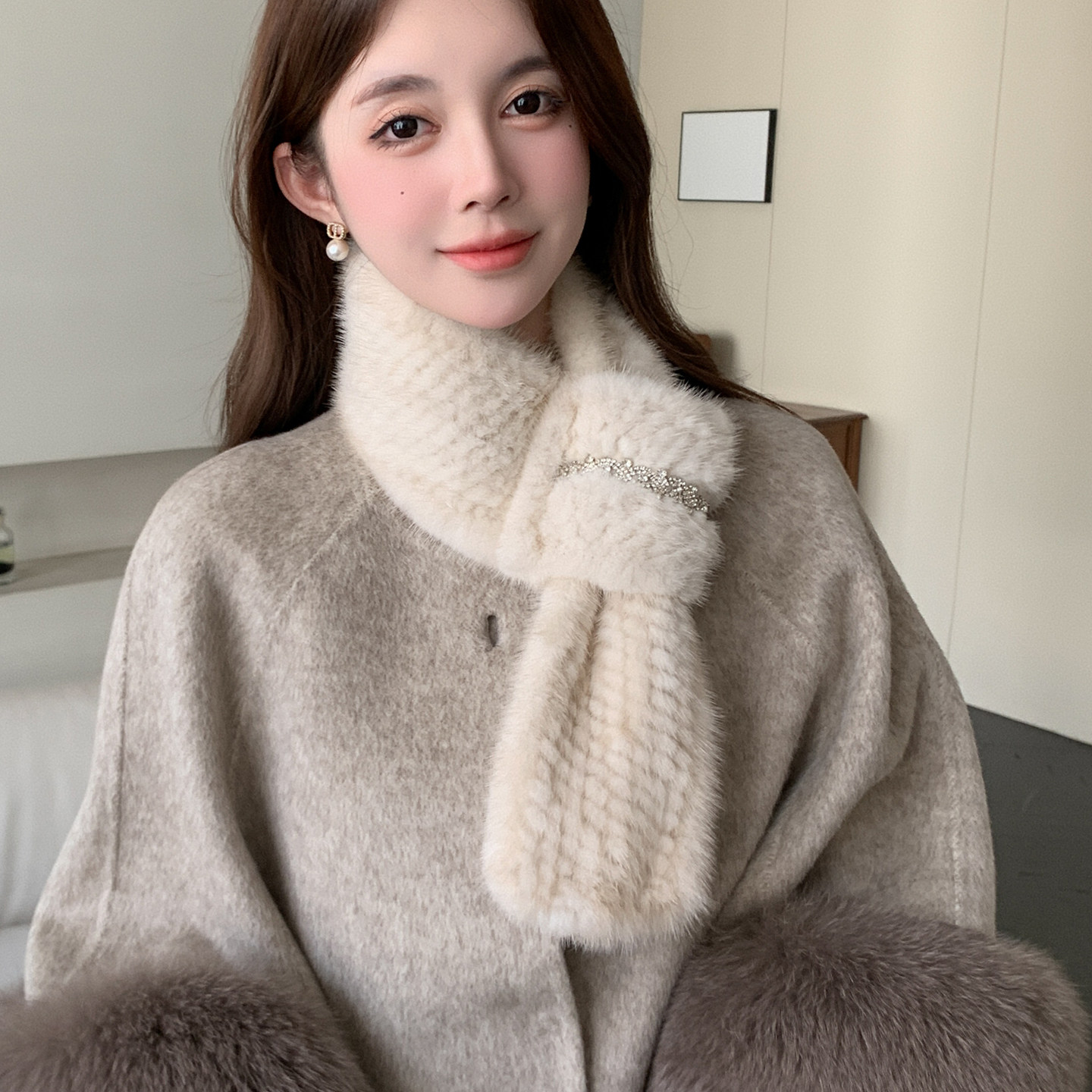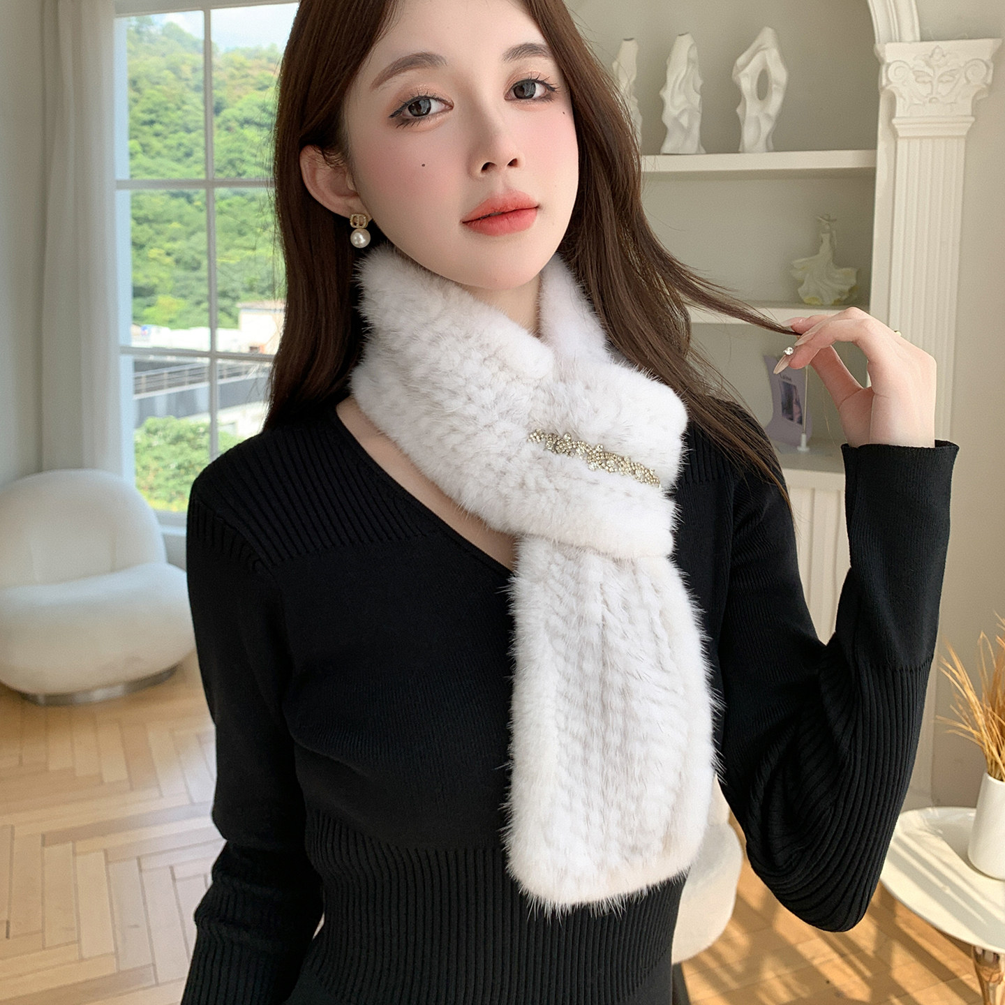 秋冬保暖水貂毛围巾女双面编织水钻韩版百搭貂皮皮草围脖女士气质