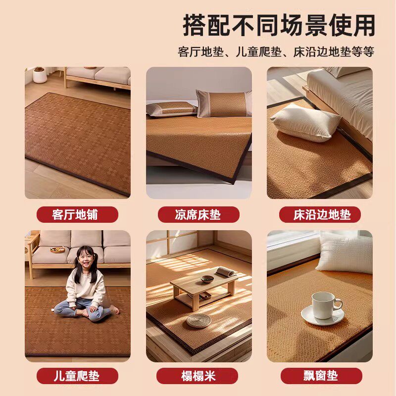 夏季藤席冰丝席凉席草席子地垫家用打地铺藤编地毯床垫可折叠地上