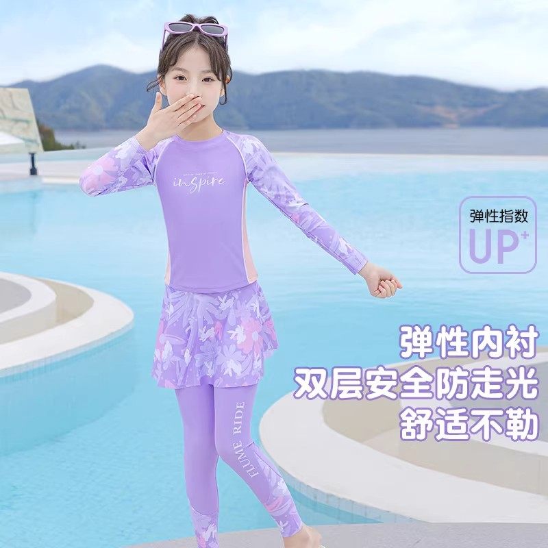 儿童泳衣女孩分体长袖长裤2026年新款中大童初中生防晒游泳衣套装