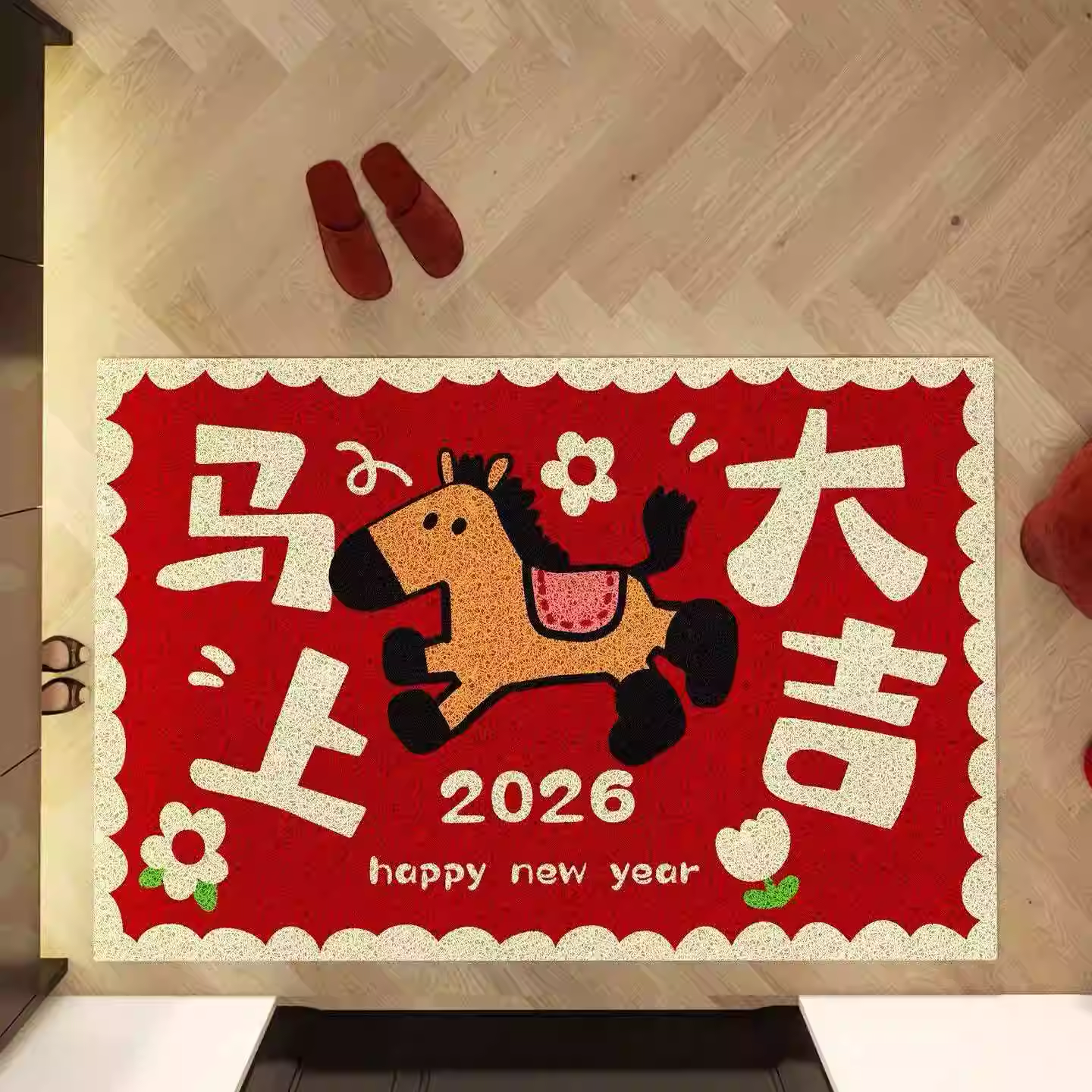 入户门地垫2026新款马年红色进门垫大门口地毯专用脚踏垫家用耐脏