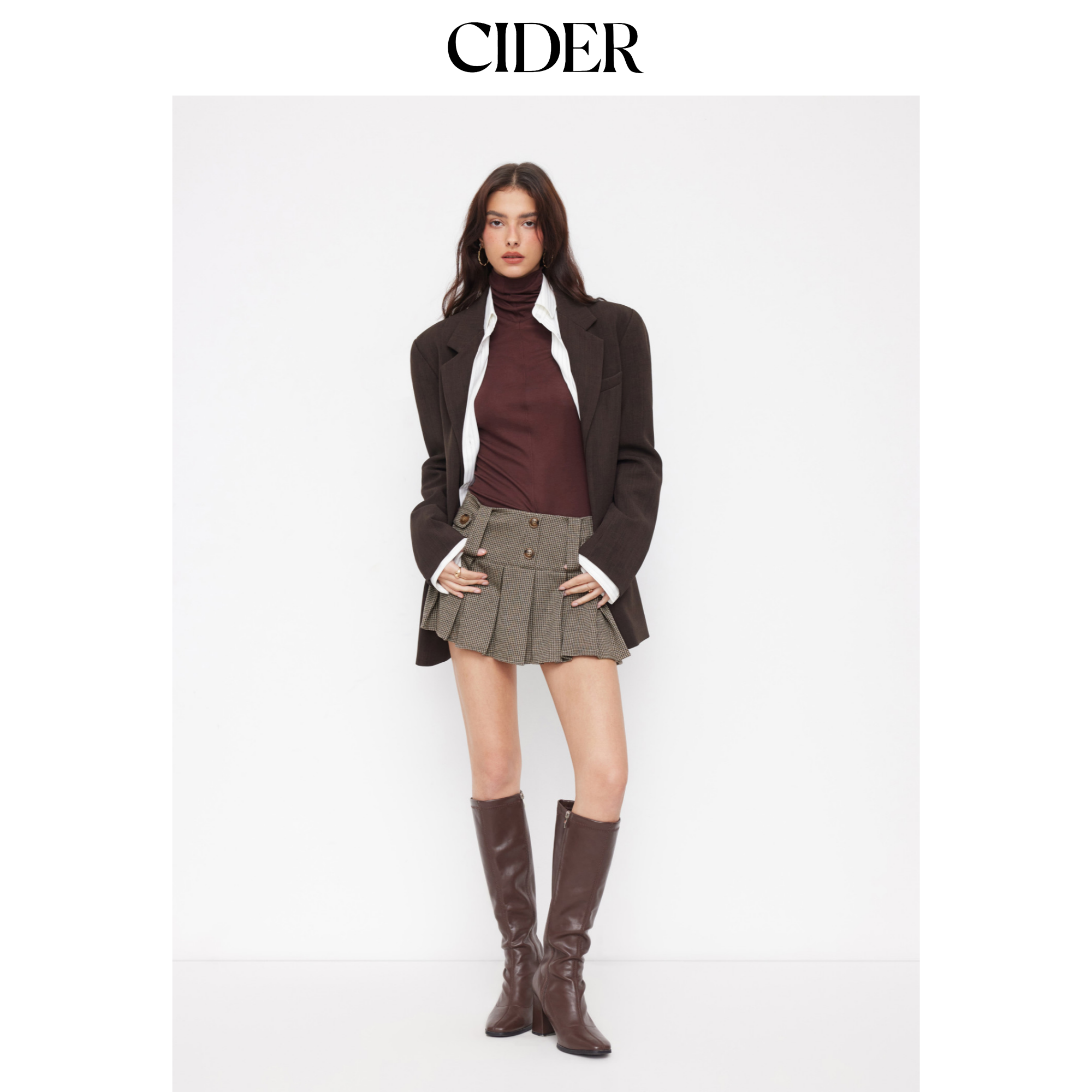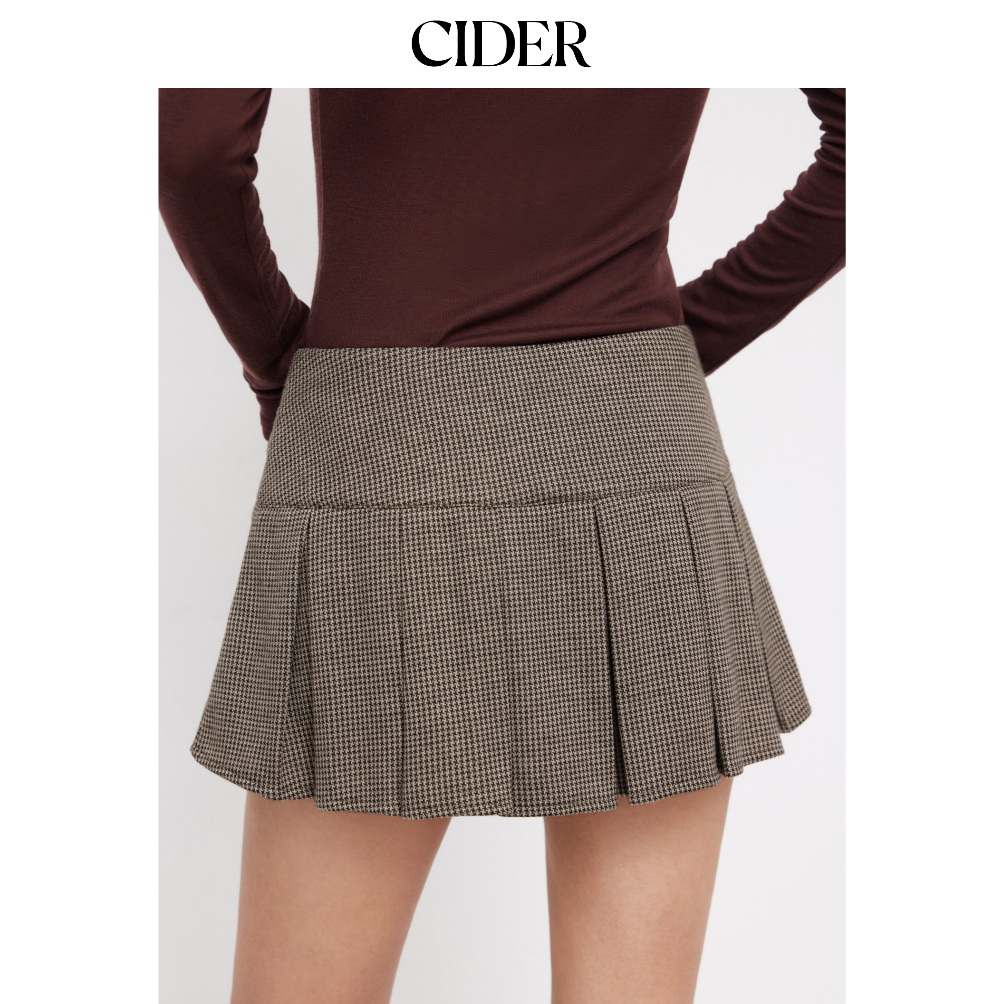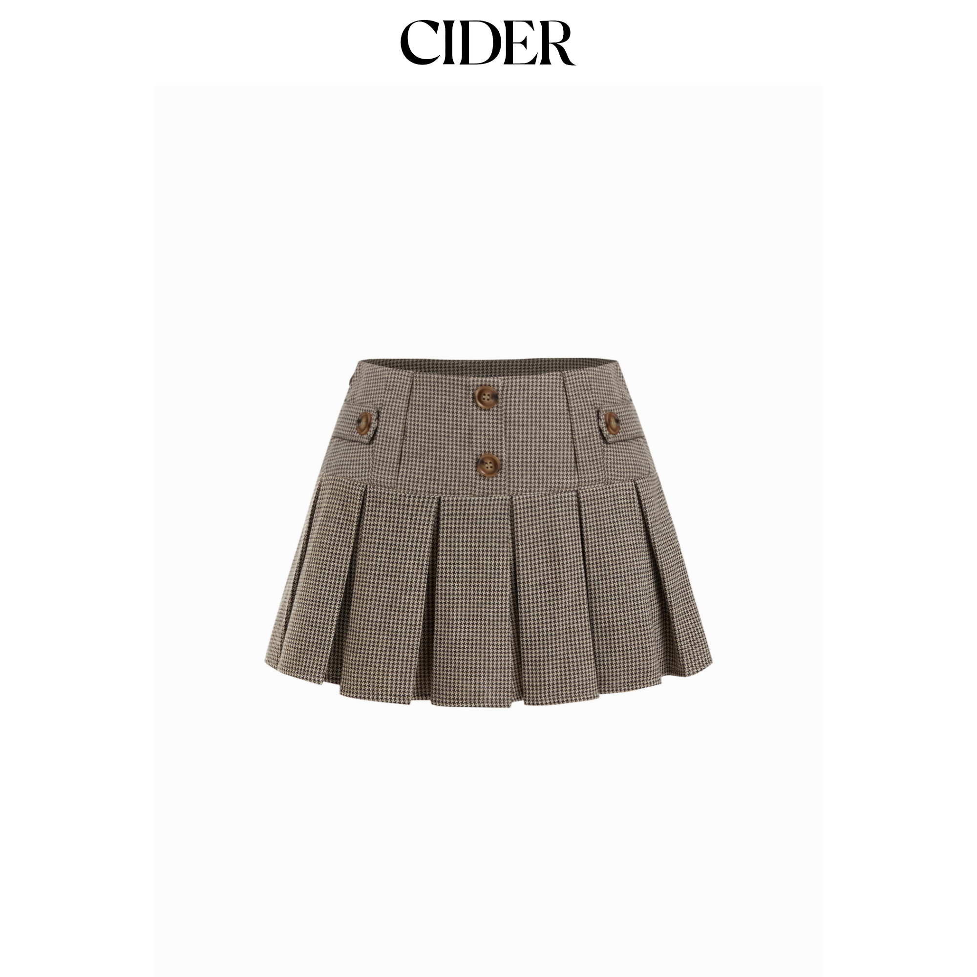 CIDER提花低腰犬牙纹带纽扣百褶迷你短裙裤115105295