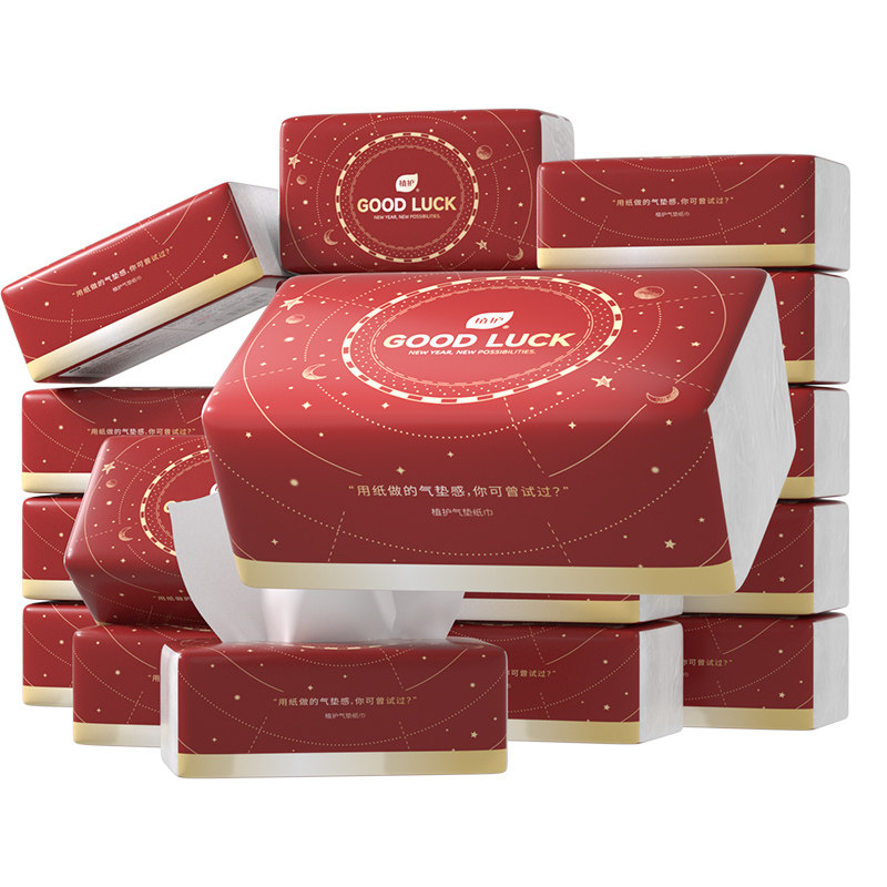 植护红韵气垫抽纸餐巾卫生纸巾婴儿擦手面巾纸抽家用实惠装整箱批