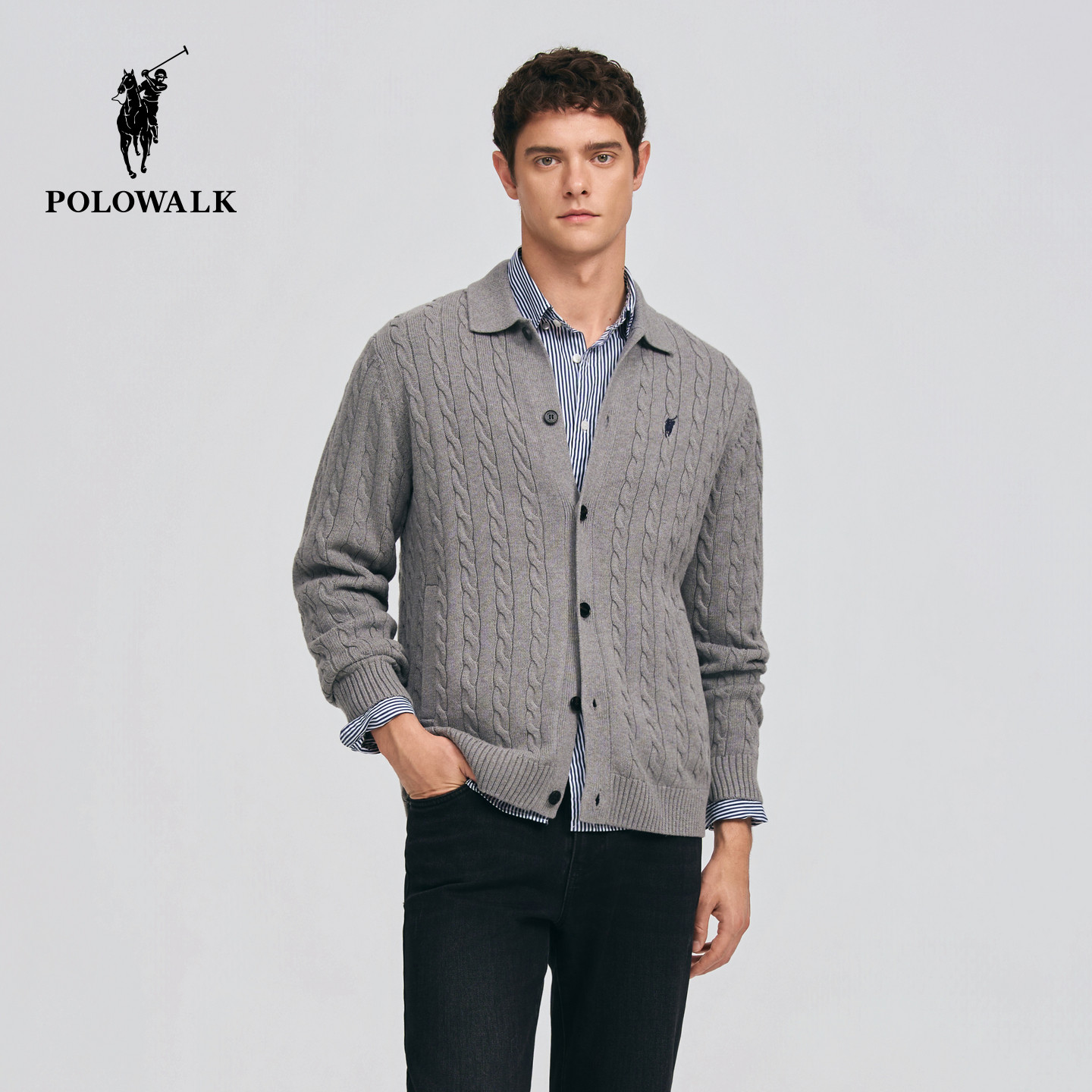 【100%棉】POLOWALK男装2026春季新品男式针织衫绞花针织毛衣男款