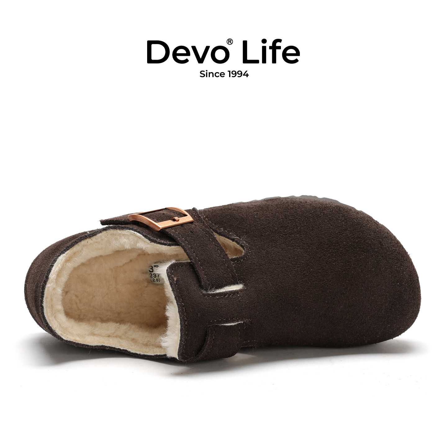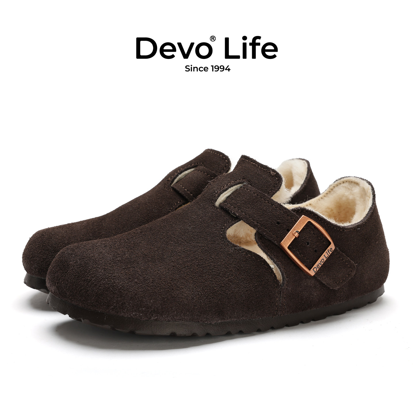 Devo/的沃软木鞋加绒保暖冬季棉鞋男女休闲毛毛全包勃肯鞋96008