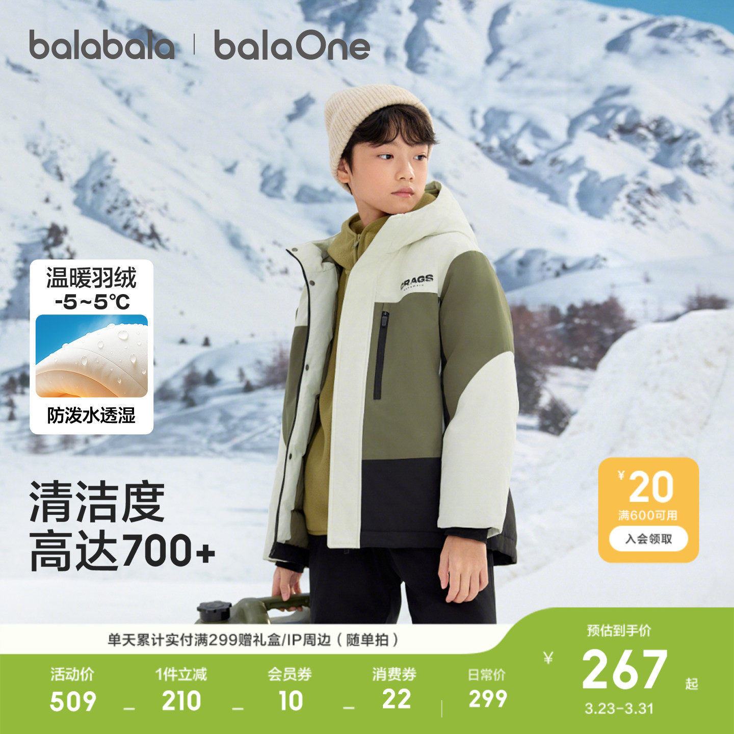 巴拉巴拉balaOne童装儿童两件套羽绒服男童女童2025冬季加厚保暖
