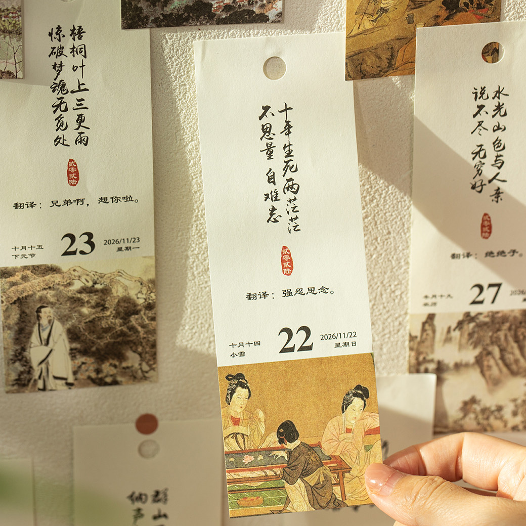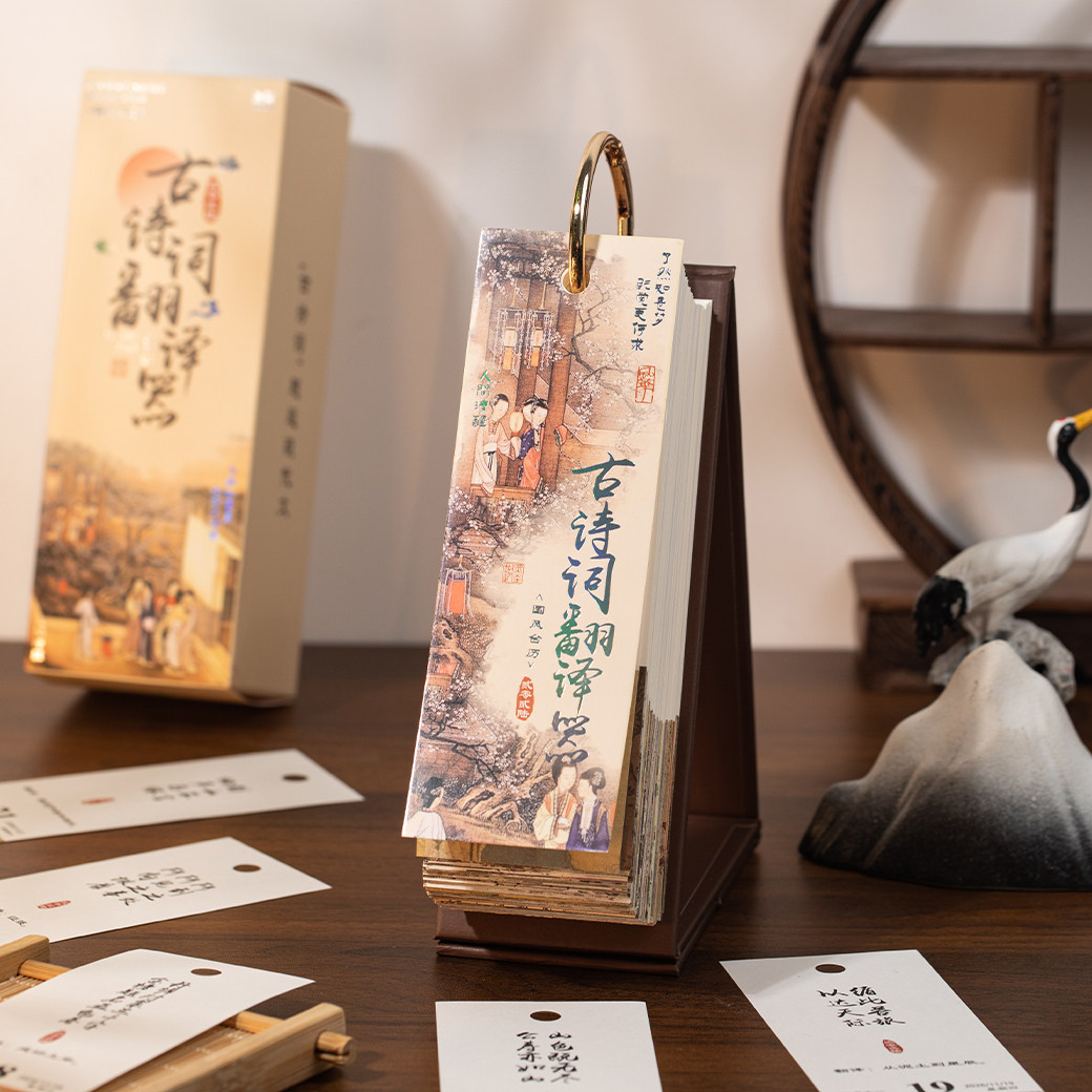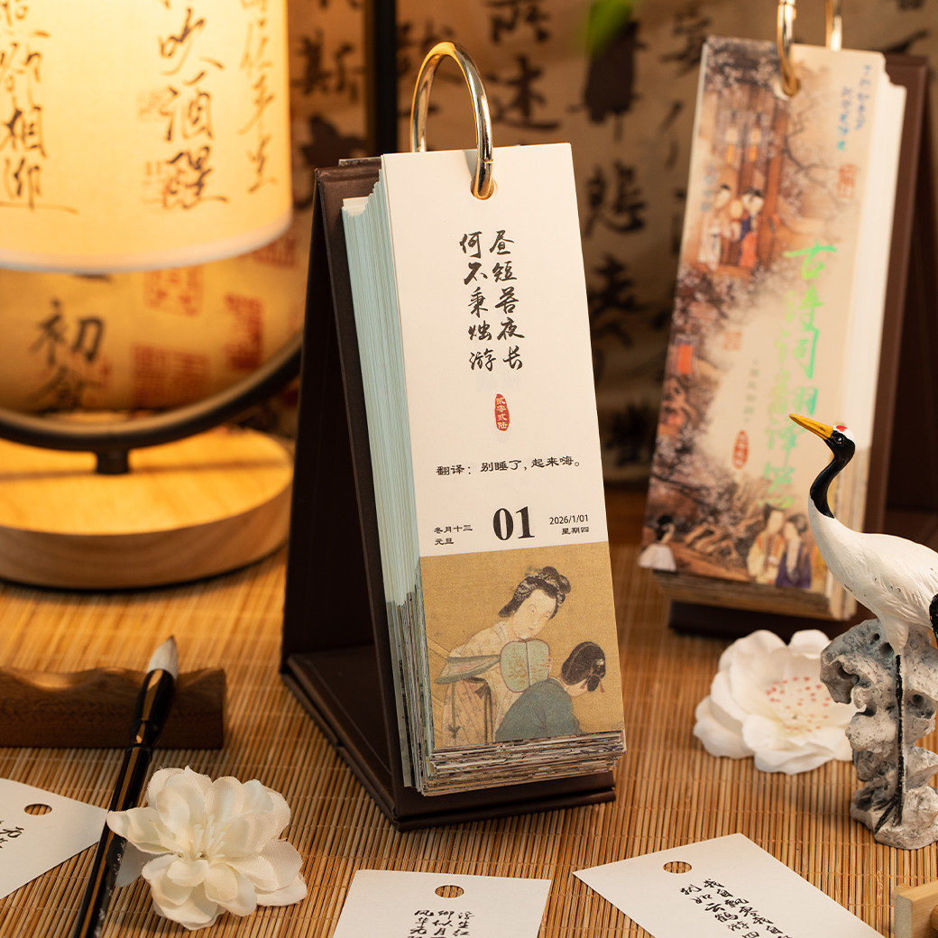 古诗词翻译器日历2026年新款古风诗词诗画台历2025解压治愈手撕高考365天打卡月历中国风创意办公室桌面摆件