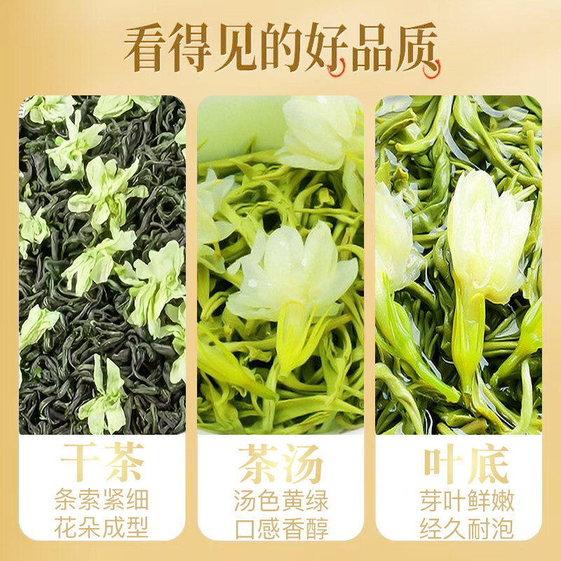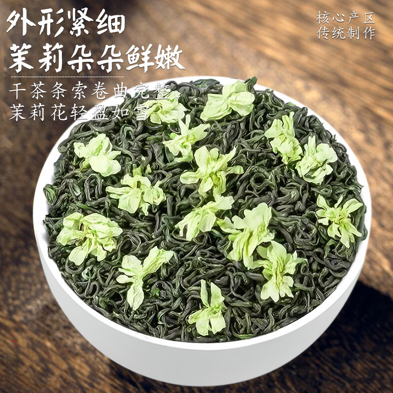 茉莉飘雪绿茶浓香型茉莉花茶130gX2礼罐