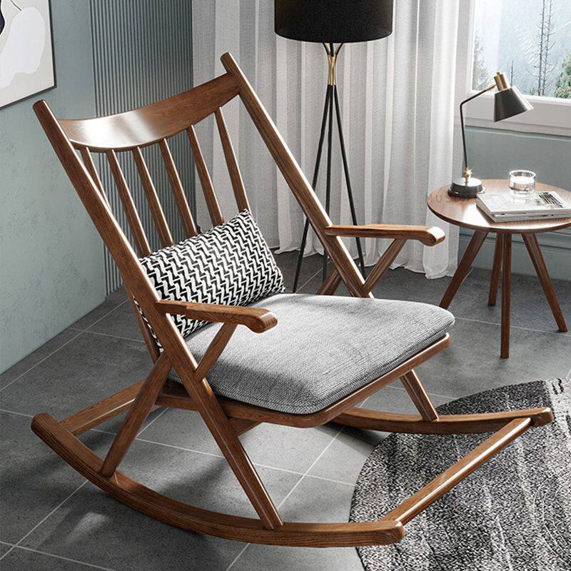 b北欧实木摇椅复古躺椅轻奢舒适沙发午睡家用室内躺卧摇摇椅懒人