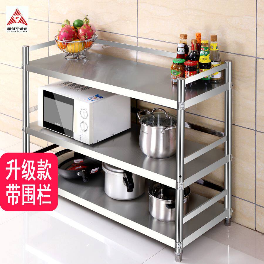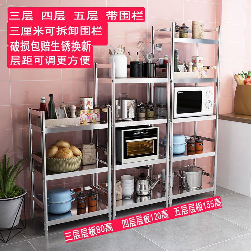 不锈钢厨房置物架四层五层微波炉架子落地储物收纳架六层家用货架