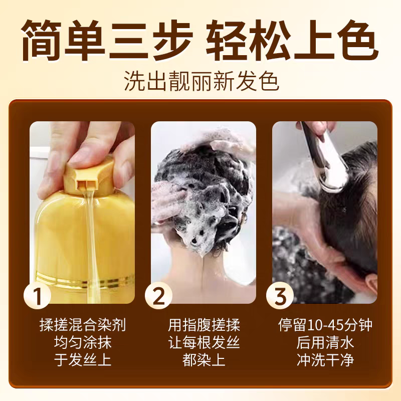 韩金靓正品染发剂黑茶色棕植物泡泡刺激无纯自己在家染发膏盖白女