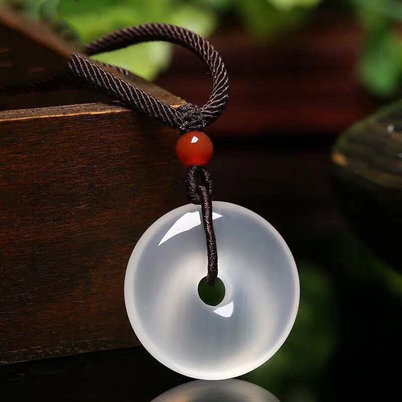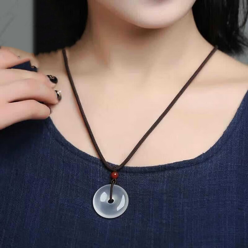 正品高冰透玉髓平安扣吊坠男女情侣信物真玉石挂件项坠学生礼物