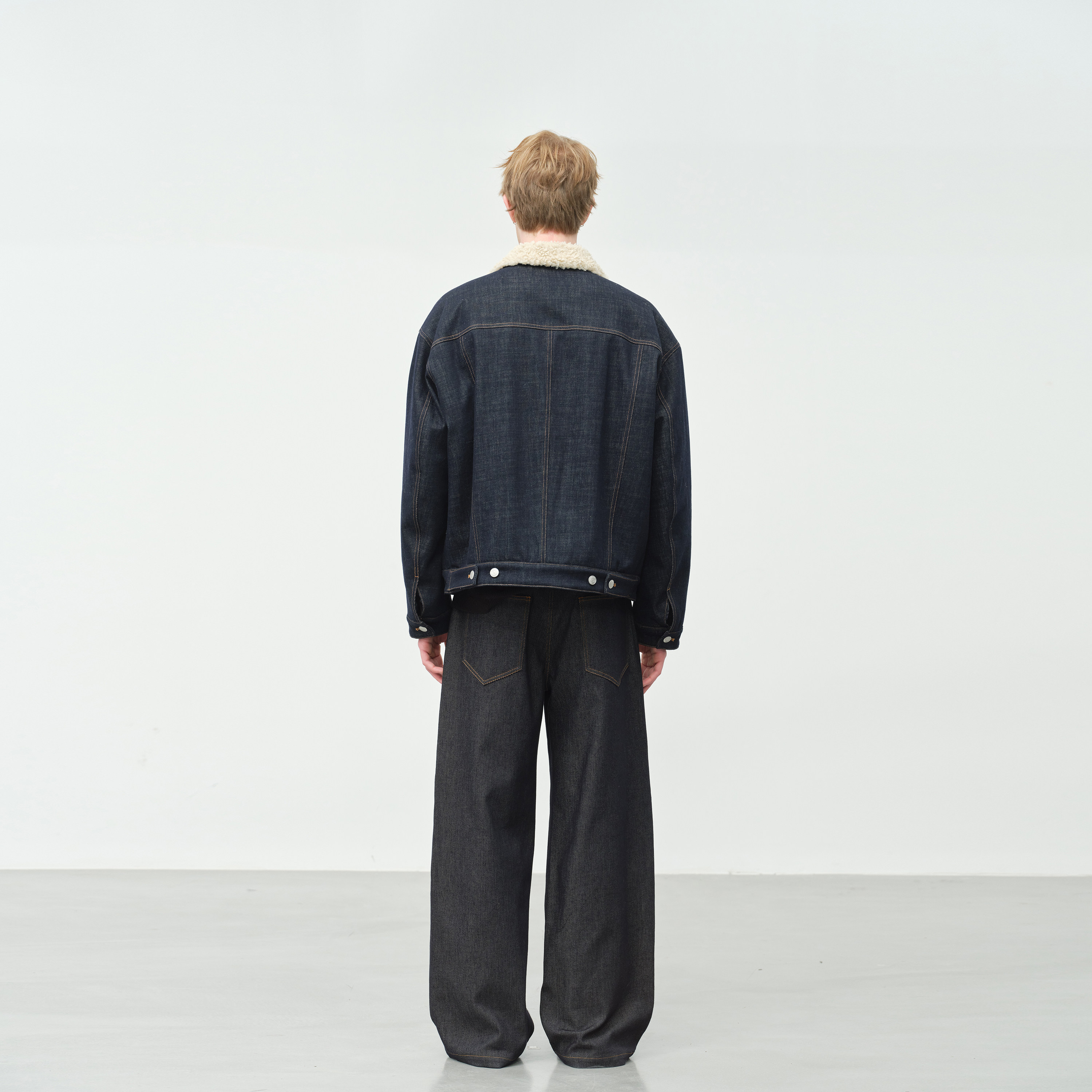 DUPU杜朴 水洗牛仔羊羔毛领夹克外套 深靛蓝粗线撞色休闲外套