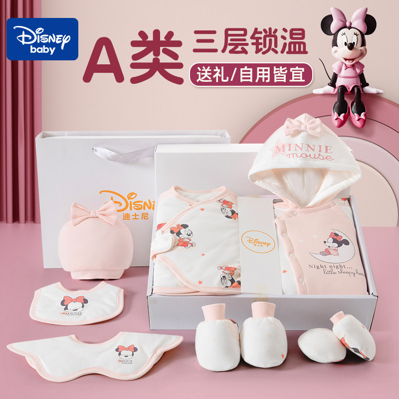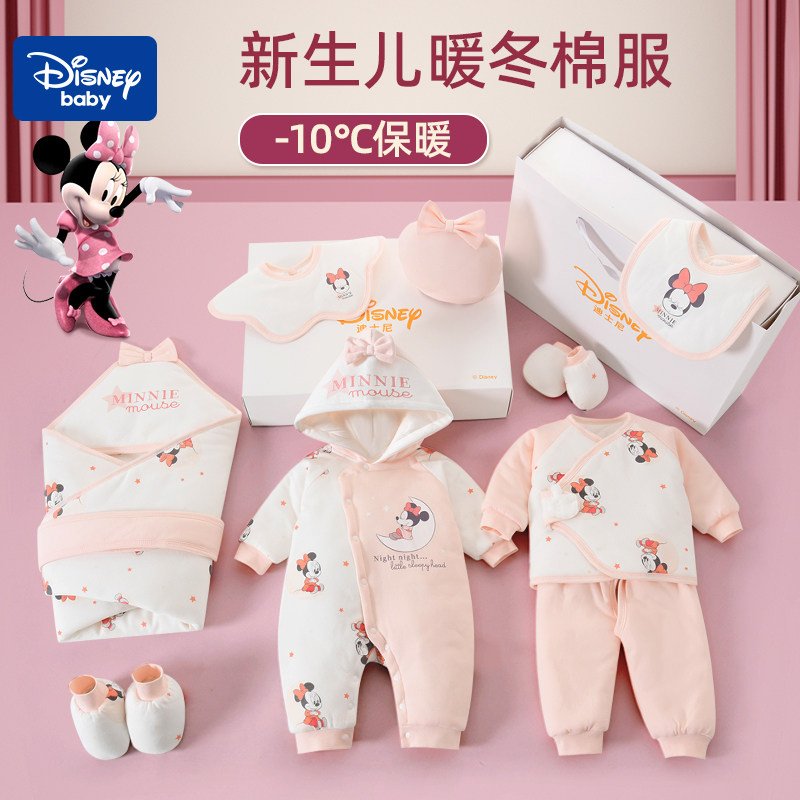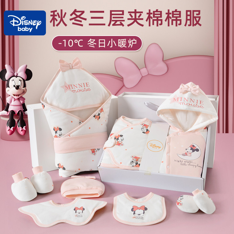 迪士尼婴儿衣服加厚礼盒套装刚出生满月见面礼物宝宝初生冬季棉袄