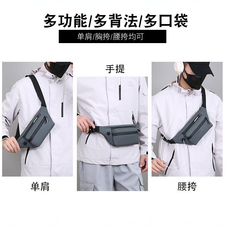新款男士腰包休闲防泼水胸包多层大容量单肩包简约纯色斜挎包批发