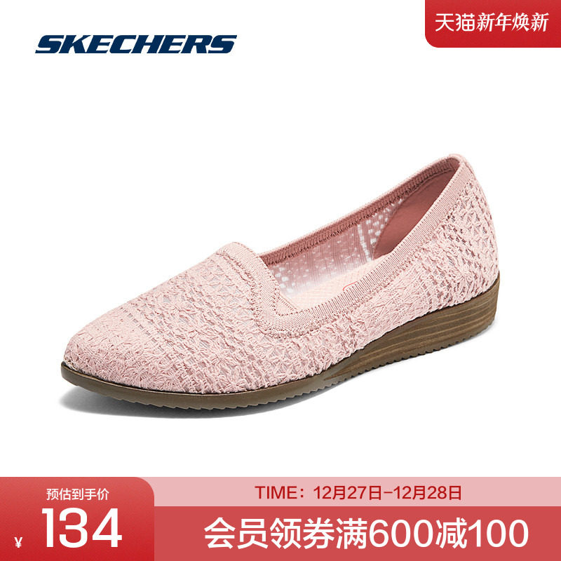 斯凯奇官方outlets2024秋新款女鞋镂空浅口单鞋通勤平底一脚蹬鞋