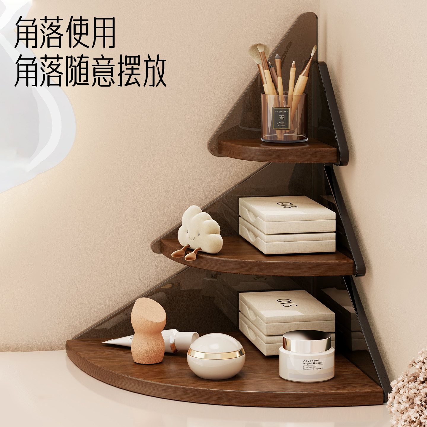 角落收纳置物架转角化妆品收纳盒梳妆台面高级感护肤品架子杯架