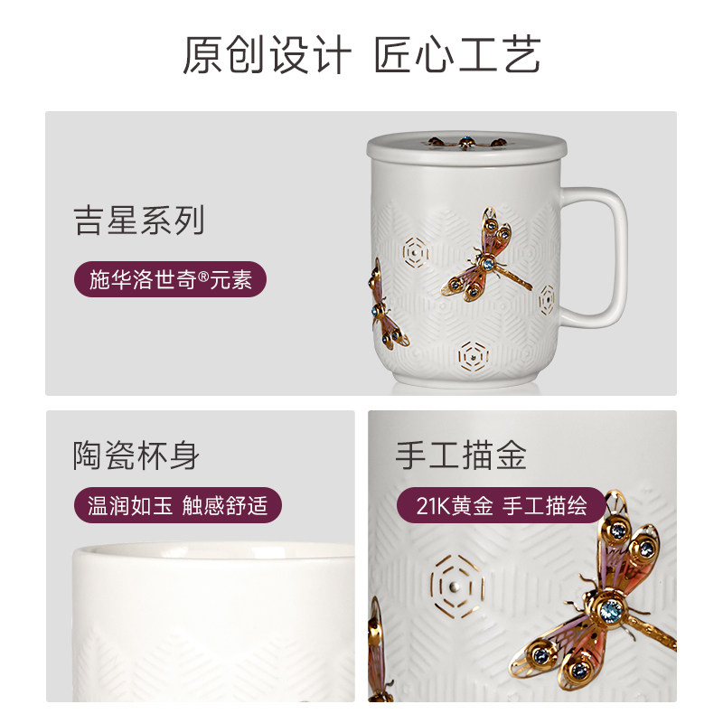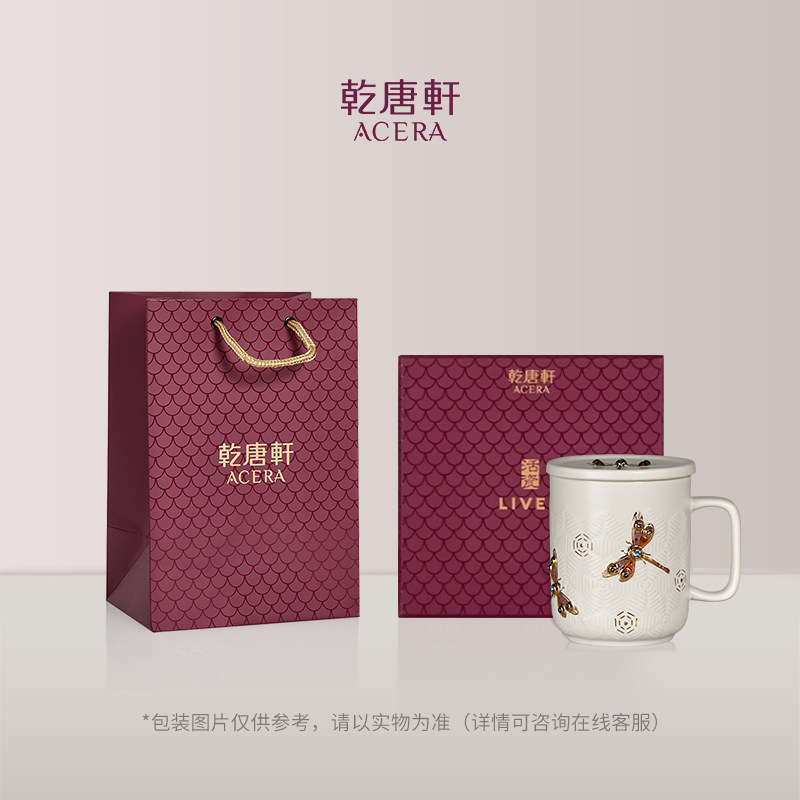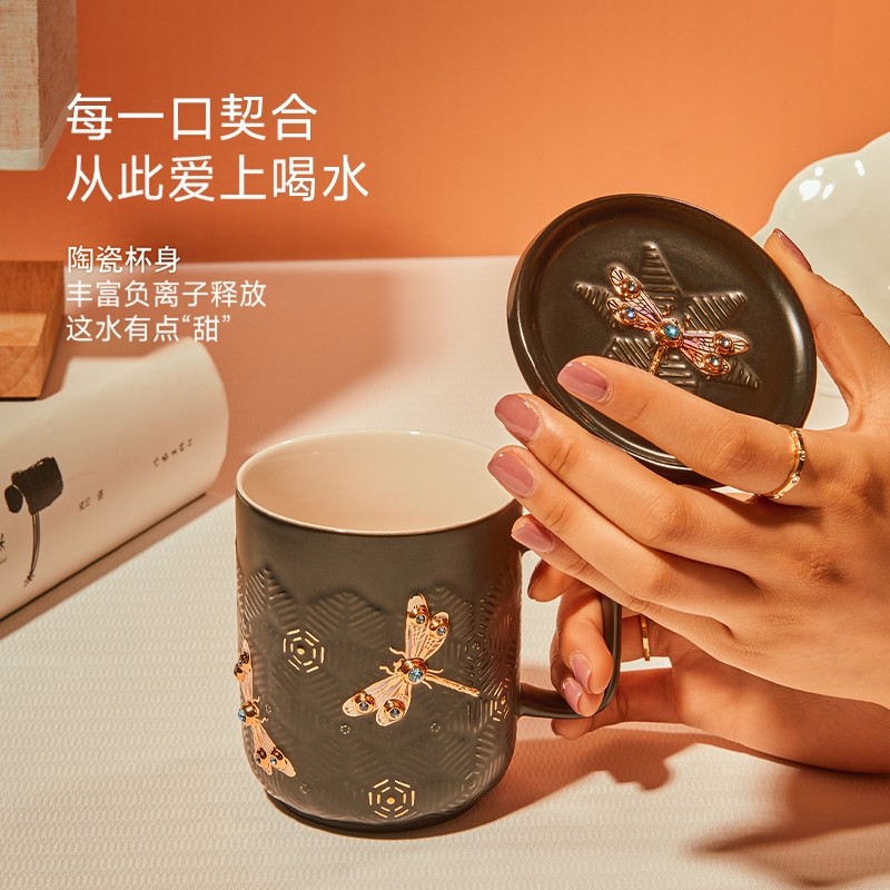 【马年礼物】乾唐轩活瓷水杯蜻投意合陶瓷带盖礼盒装带手柄马克杯