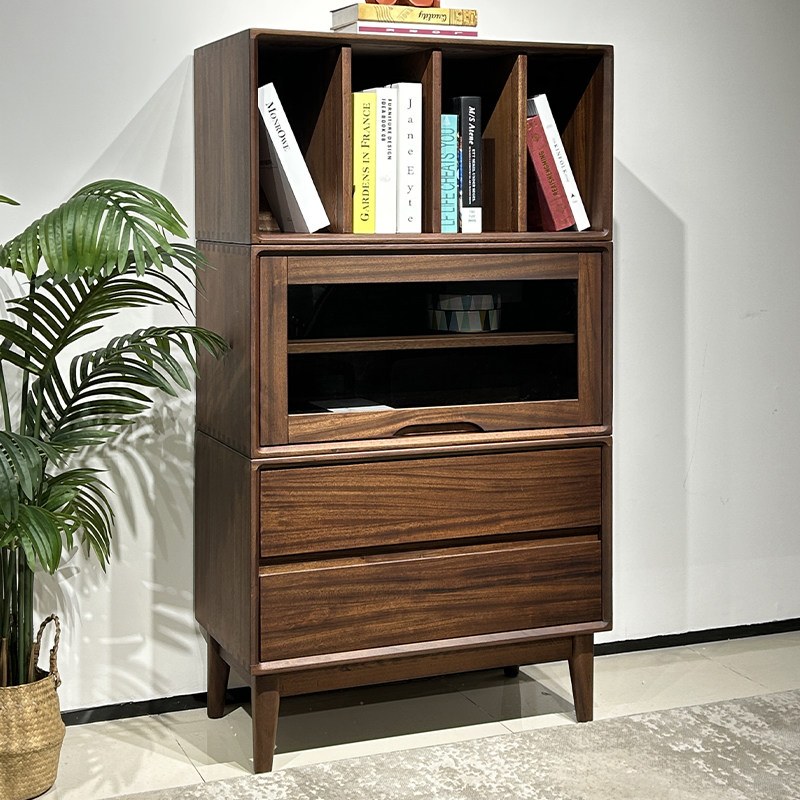 全实木边柜模块化自由组合柜客厅家用现代简约落地柜储物柜展示柜