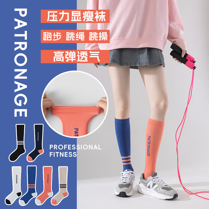 专业跑步袜子女运动长筒夏季健身瘦腿长袜骑行跳绳跳绳小腿压力袜