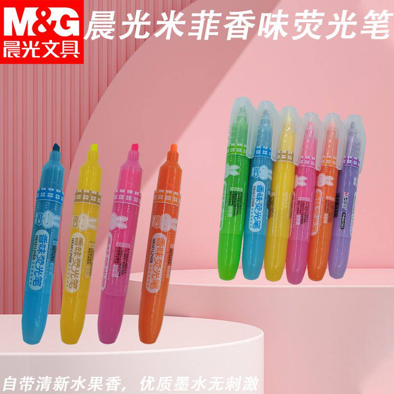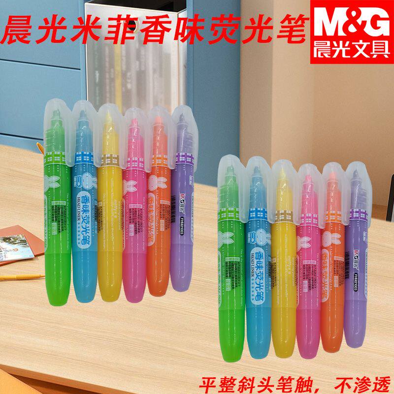 晨光单头荧光笔扁平头快干FHM21003不易褪色做记号米菲多彩荧光笔