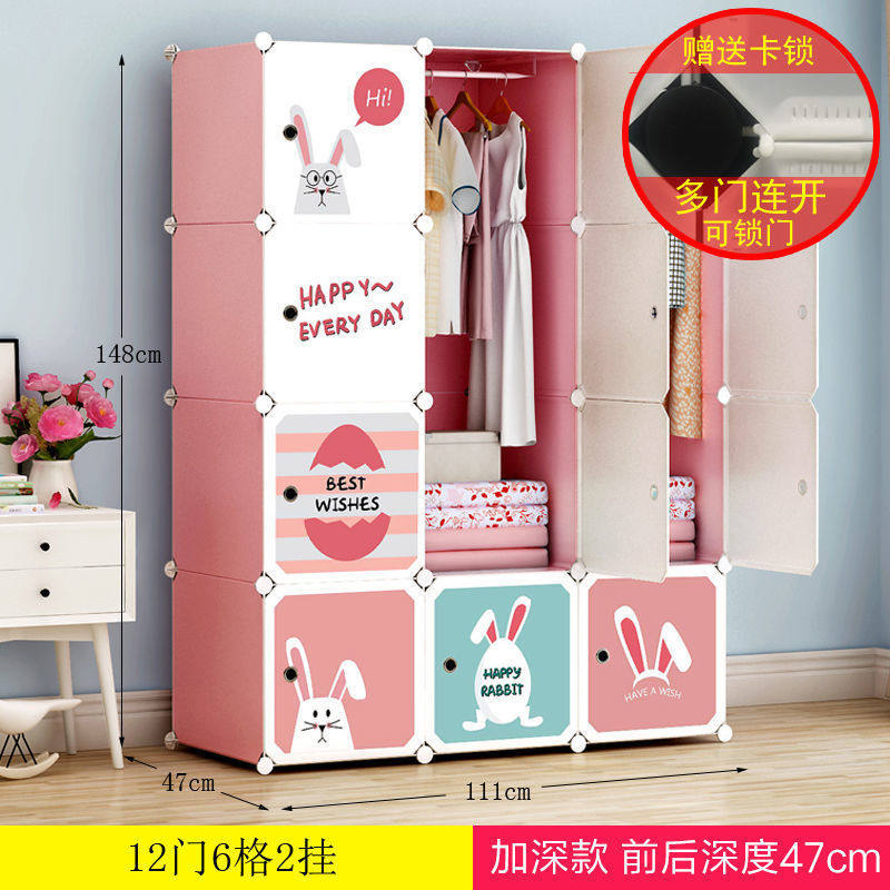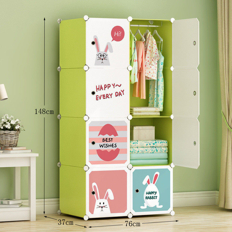 儿童魔片衣柜简易收纳架折叠组合卡通组装收纳柜子简约衣架书架