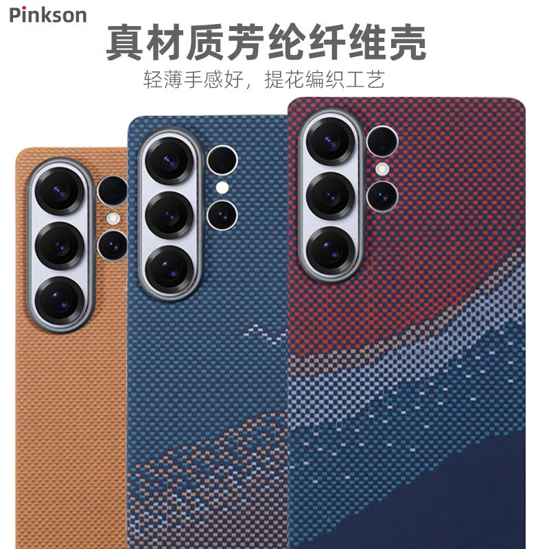Pinkson适用三星S25/S24/S23Ultra手机壳凯夫拉芳纶碳纤维纹保护套S25u超薄全包磨砂硬壳商务新款简约散热男