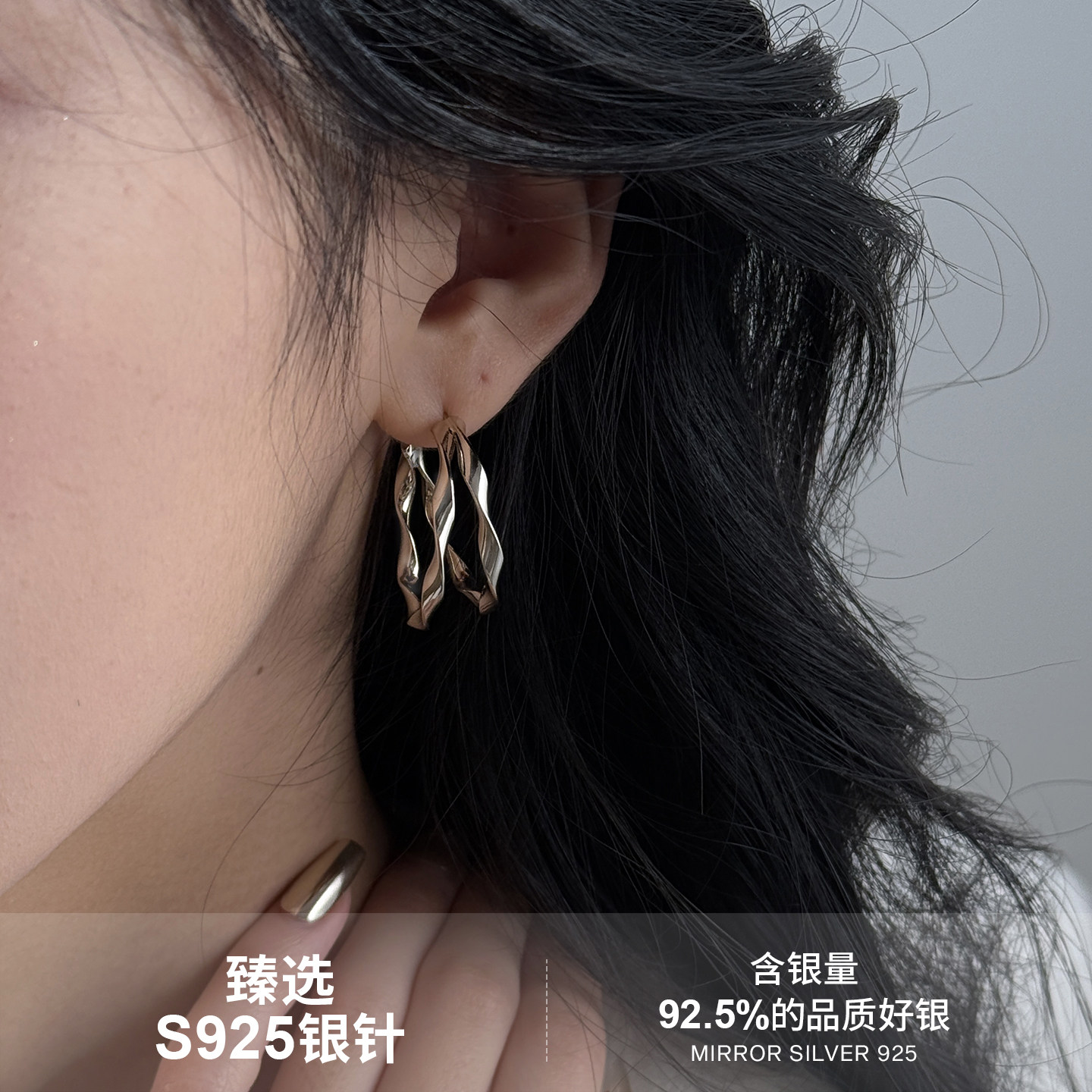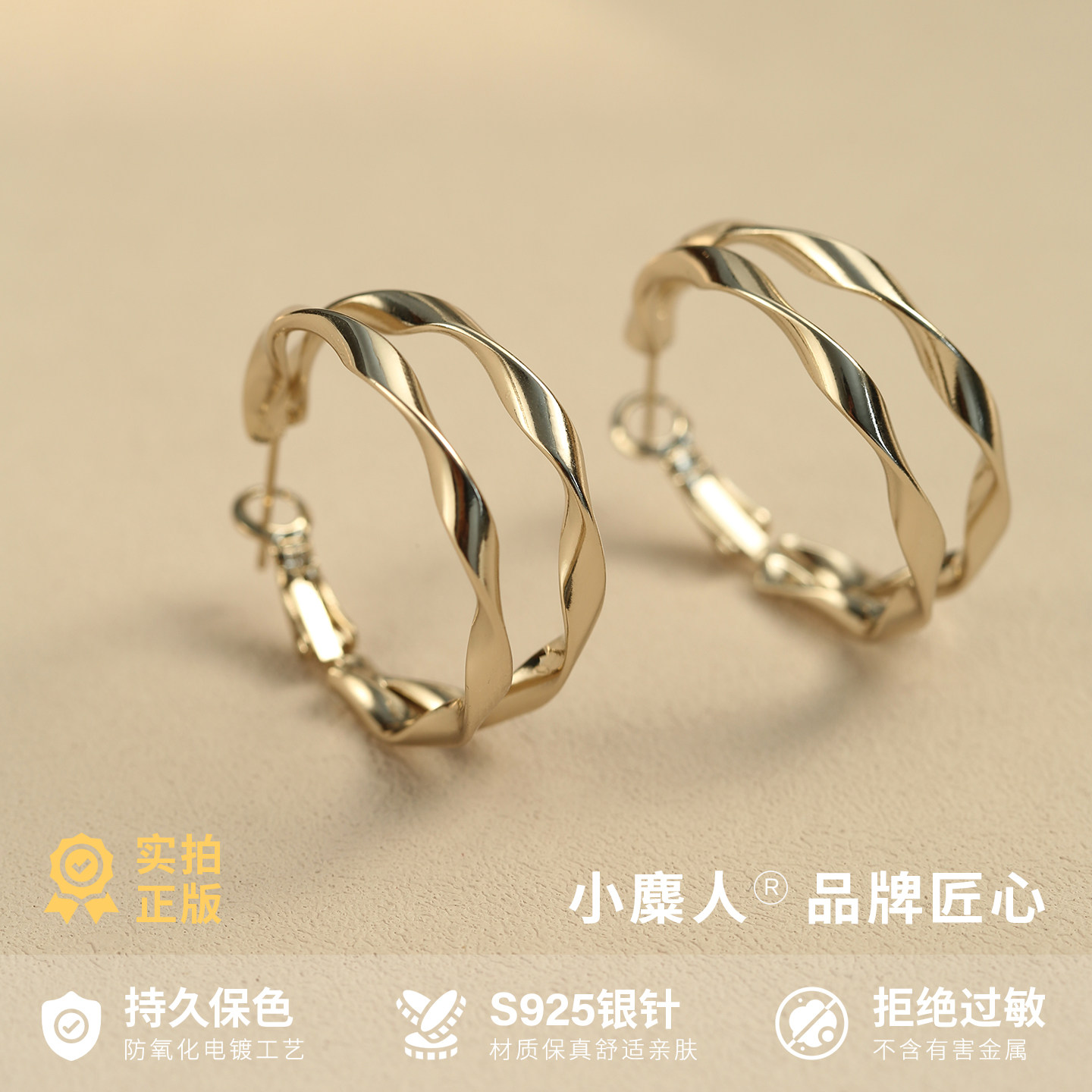 小麋人925纯银双层波浪素圈耳圈女耳环耳饰小众设计银针爆款925银
