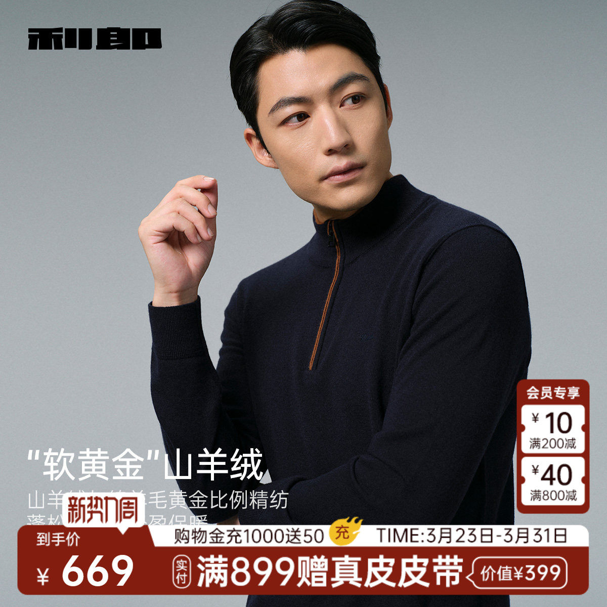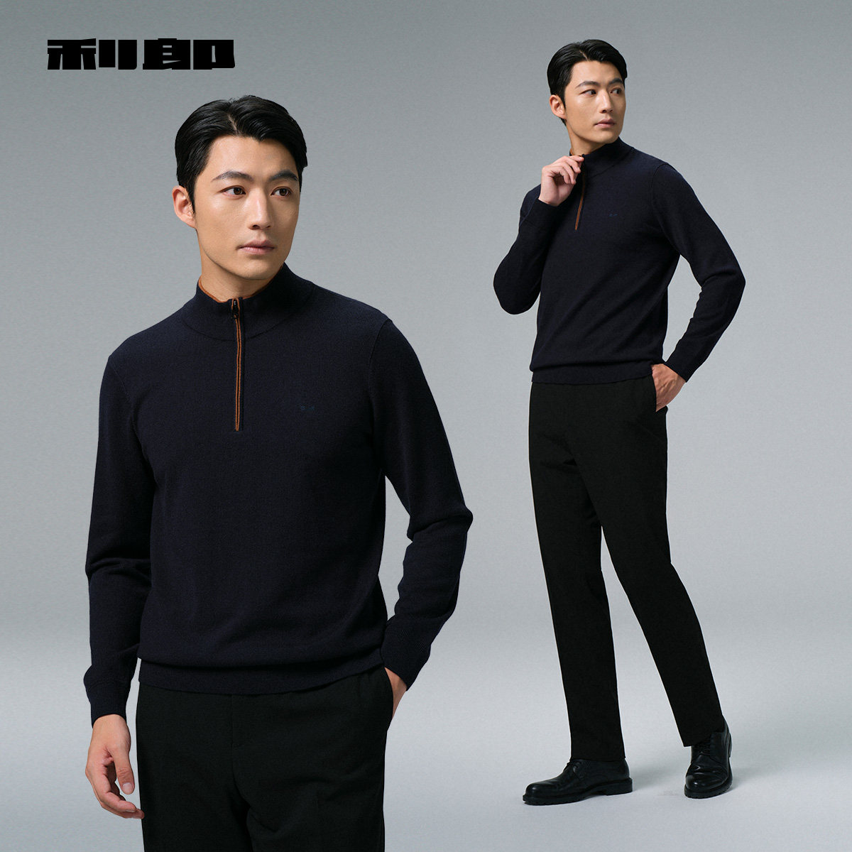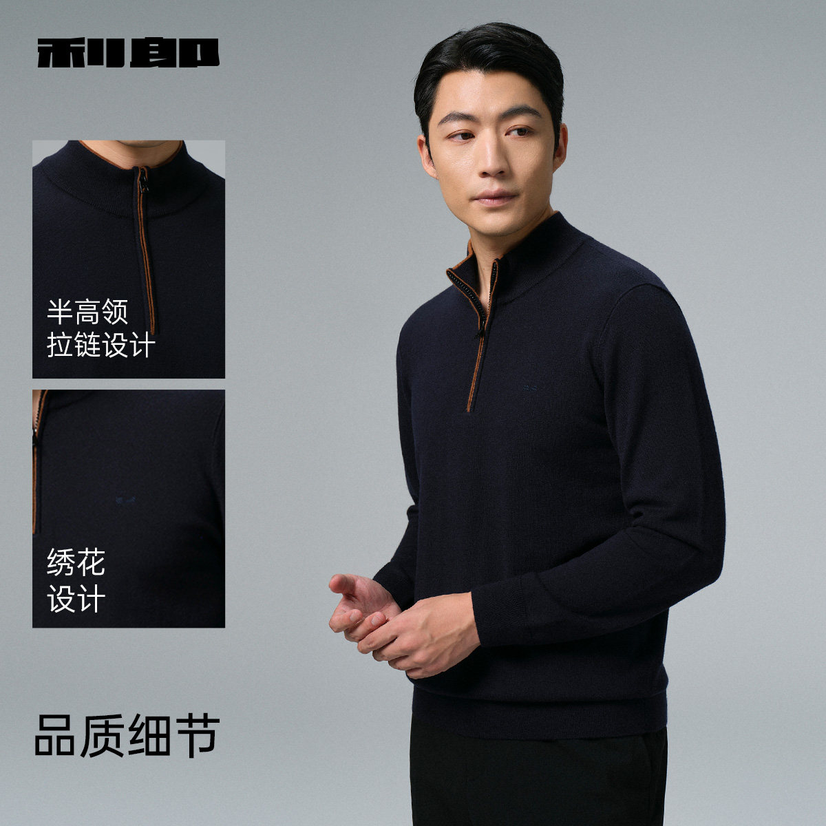 【含山羊绒/拉链领】利郎官方毛衣男冬季商务男装半高领毛衫