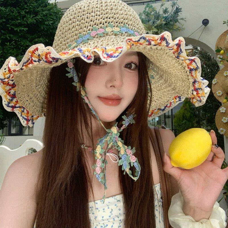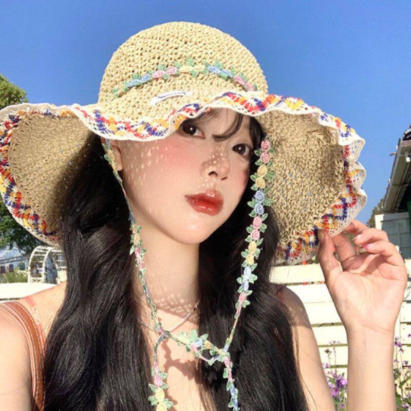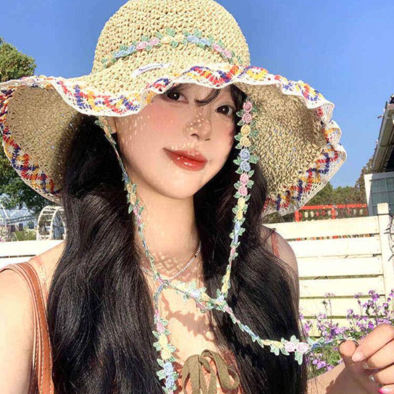 民族风大帽檐草帽女夏季海边沙滩度假风遮阳帽子显脸小草编渔夫帽