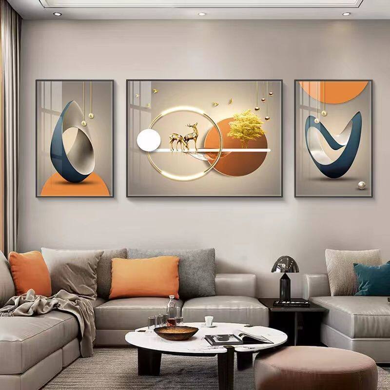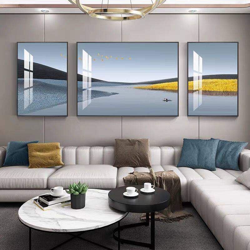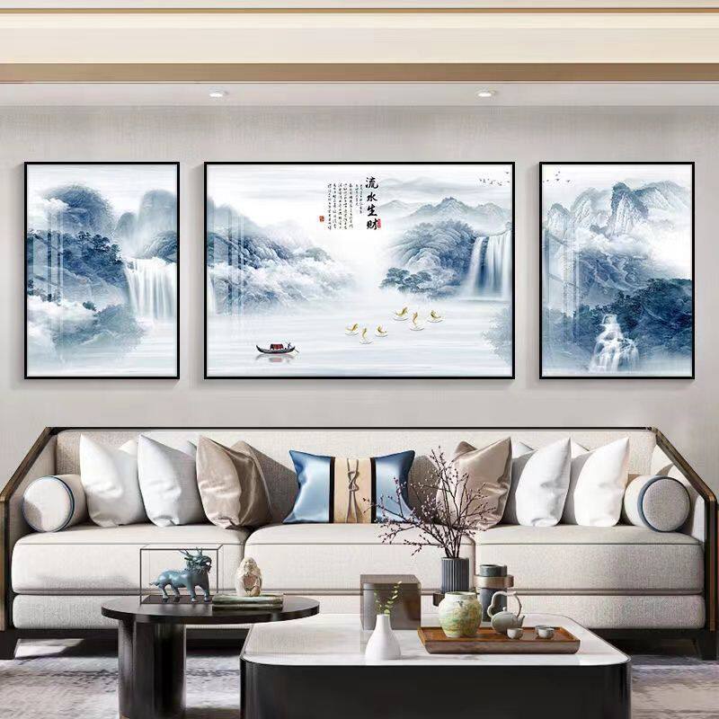 客厅装饰画中式现代简约沙发背景墙挂画三联画山水画北欧轻奢壁画