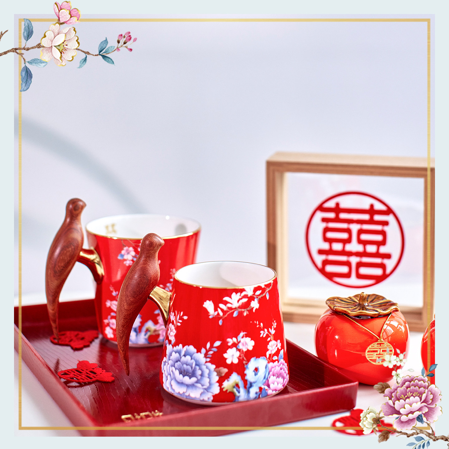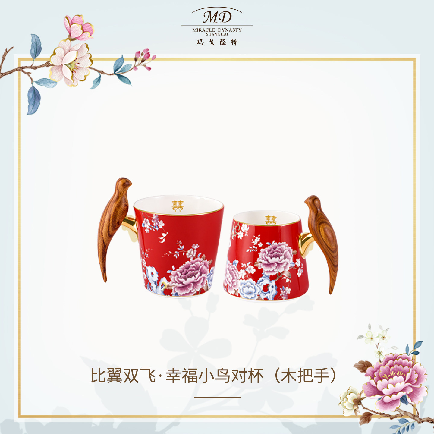 玛戈隆特幸福小鸟对杯高颜值杯子情侣马克杯礼盒套装新婚咖啡杯