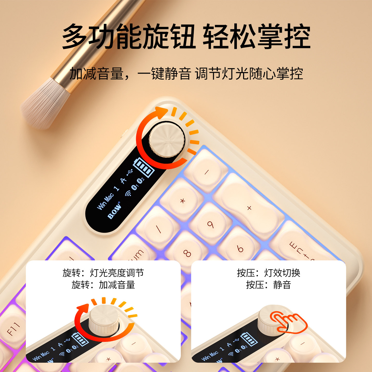 BOW 粉底液无线蓝牙三模键盘鼠标套装电脑女生办公机械打字手感好