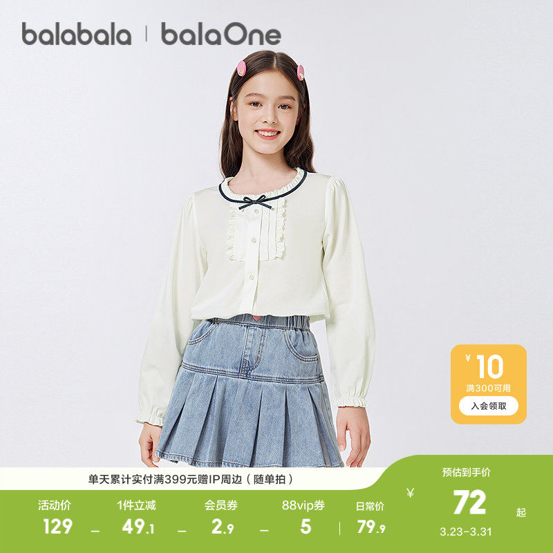 巴拉巴拉女童衬衫儿童长袖秋装精致时尚柔软甜美凉感抗菌休闲洋气