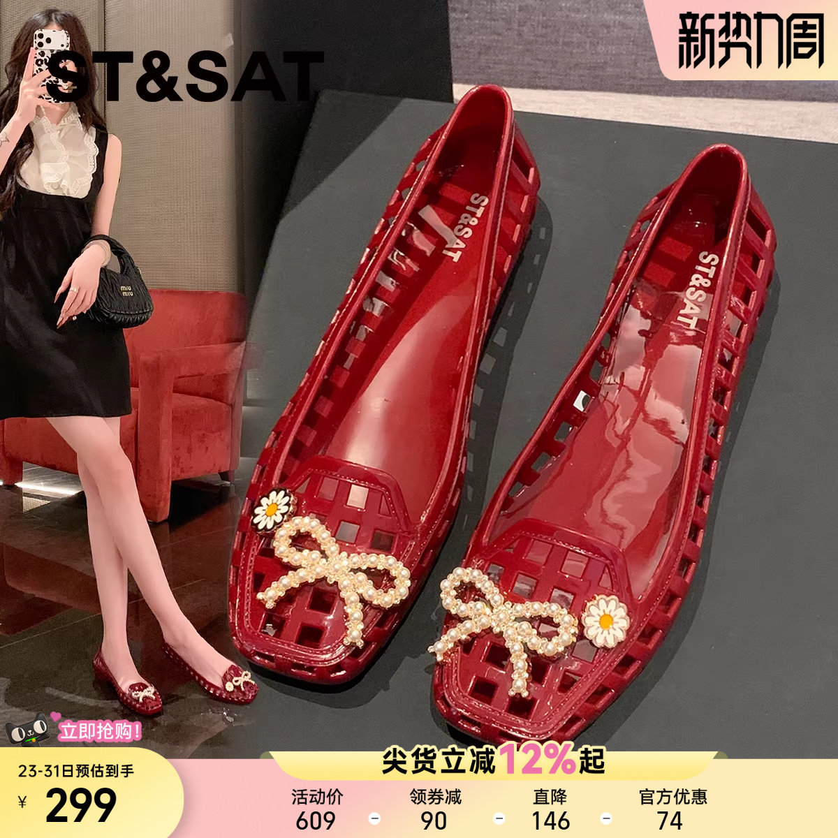 星期六爆款红色镂空果冻水晶鞋女鞋2026春夏新款软底气质罗马凉鞋