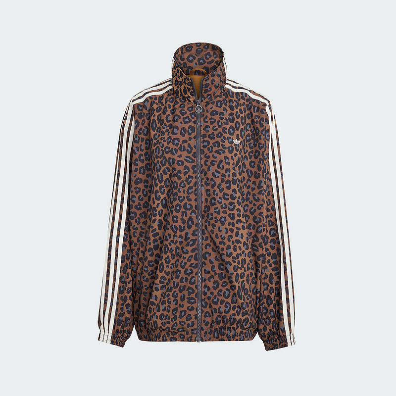 adidas阿迪达斯三叶草豹纹印花夹克春秋女潮酷梭织外套JW7301