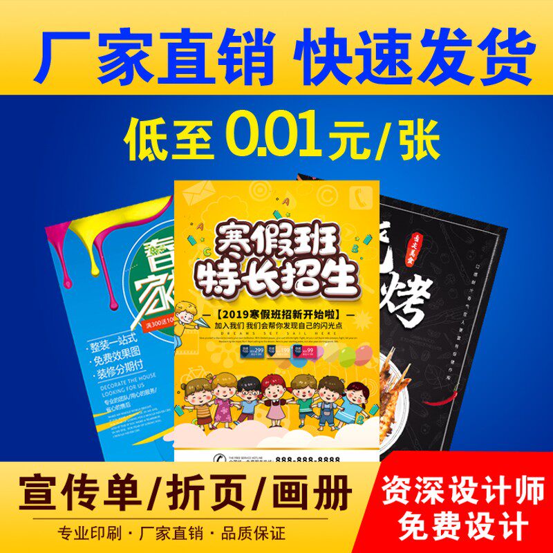 广告宣传海报印制招生菜单页a4a5双面彩页三折页画册印刷定制设计