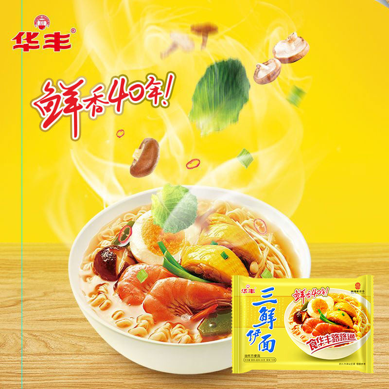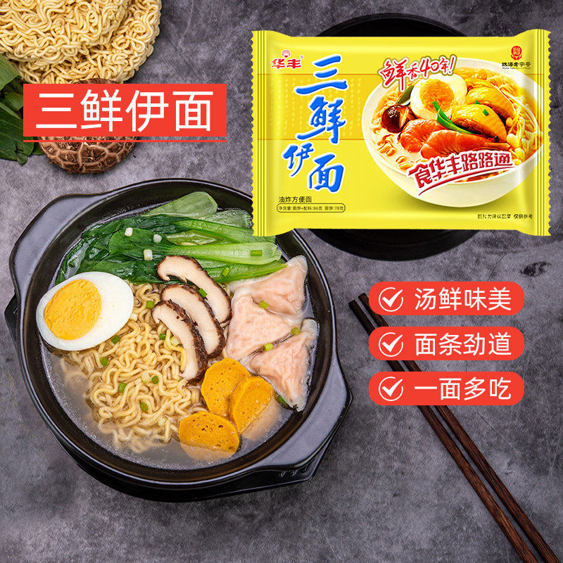 华丰三鲜伊面原味86g老牌子方便面怀旧零食泡面干吃面零食袋装