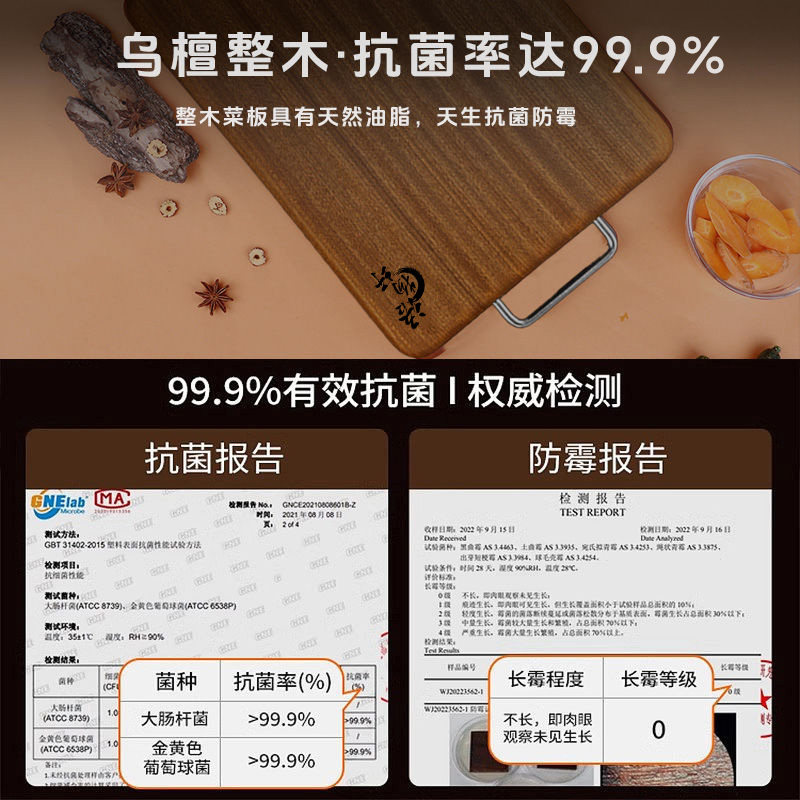 语物圩整木乌檀木菜板食品级防霉抗菌家用实木切菜板厨房砧板案板