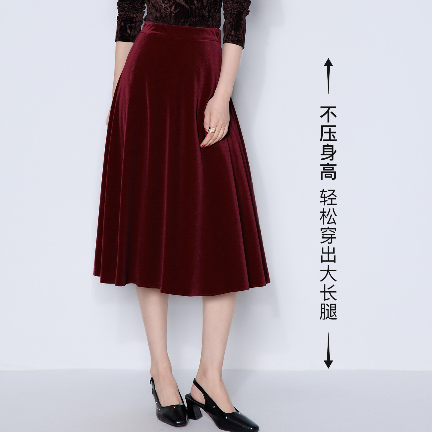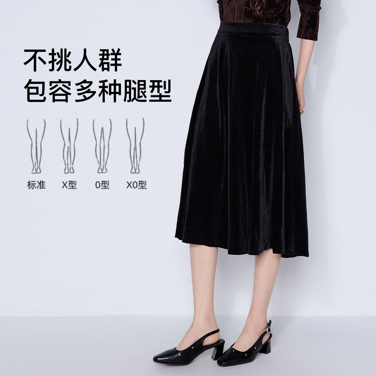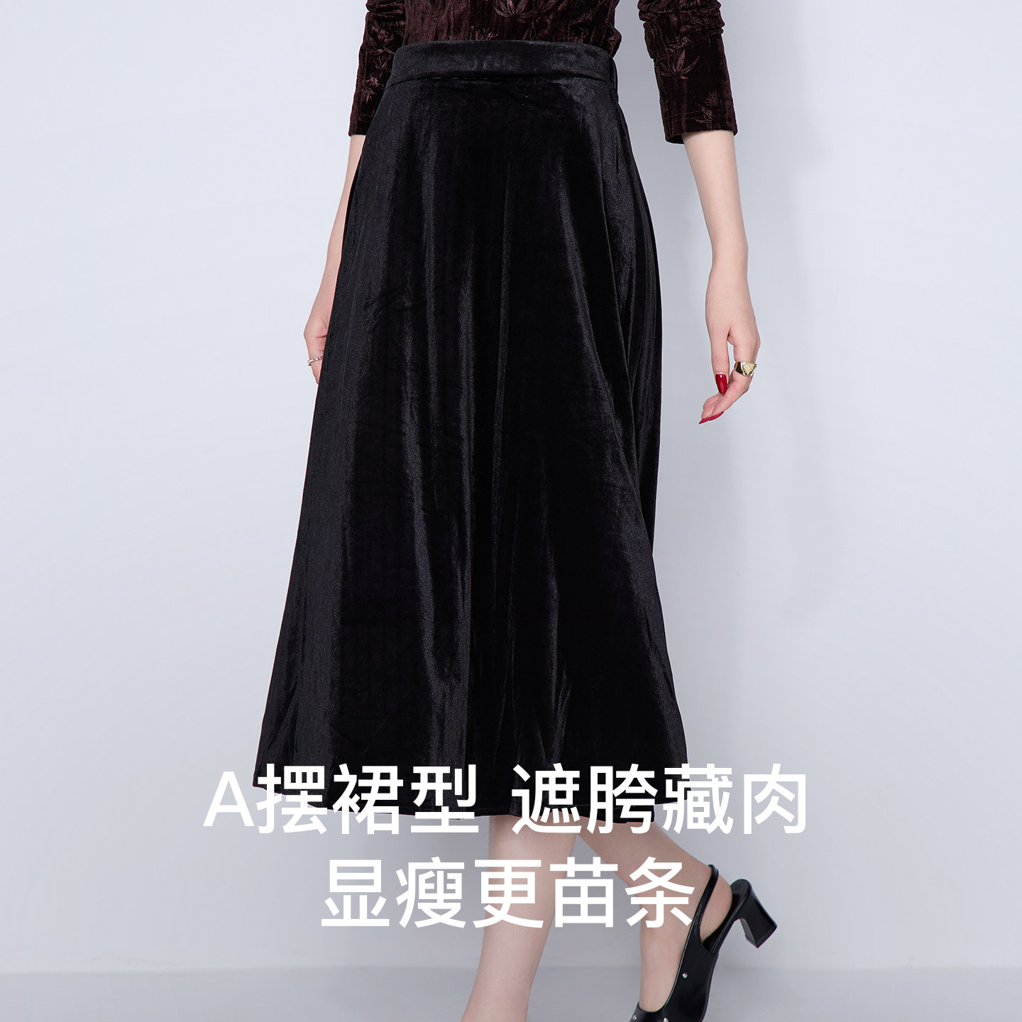 马天奴秋冬款复古丝绒半身裙女装长裙高级感伞裙气质百搭小黑裙子