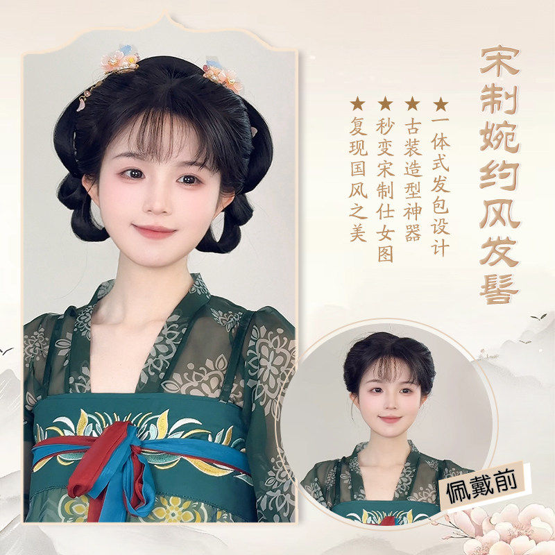 古风汉服假发髻盘发一体式发包古装明制唐风懒人造型垫发全套头饰