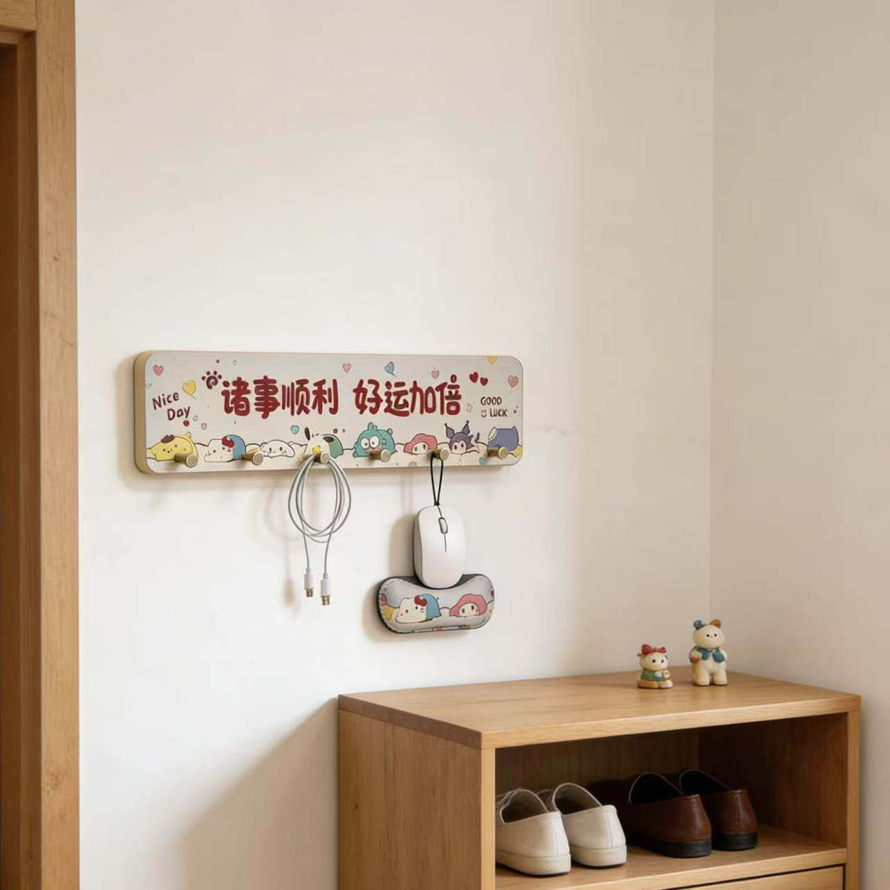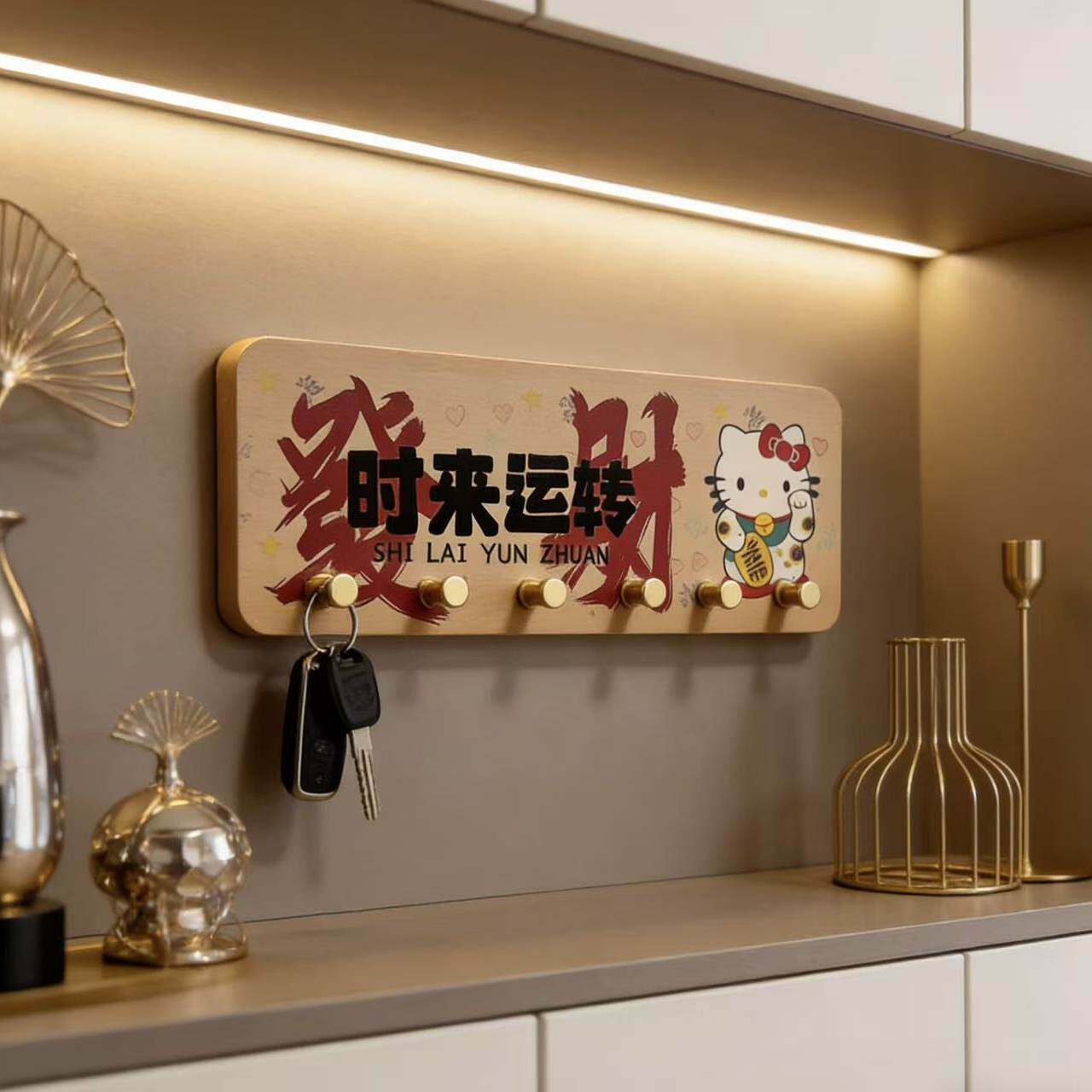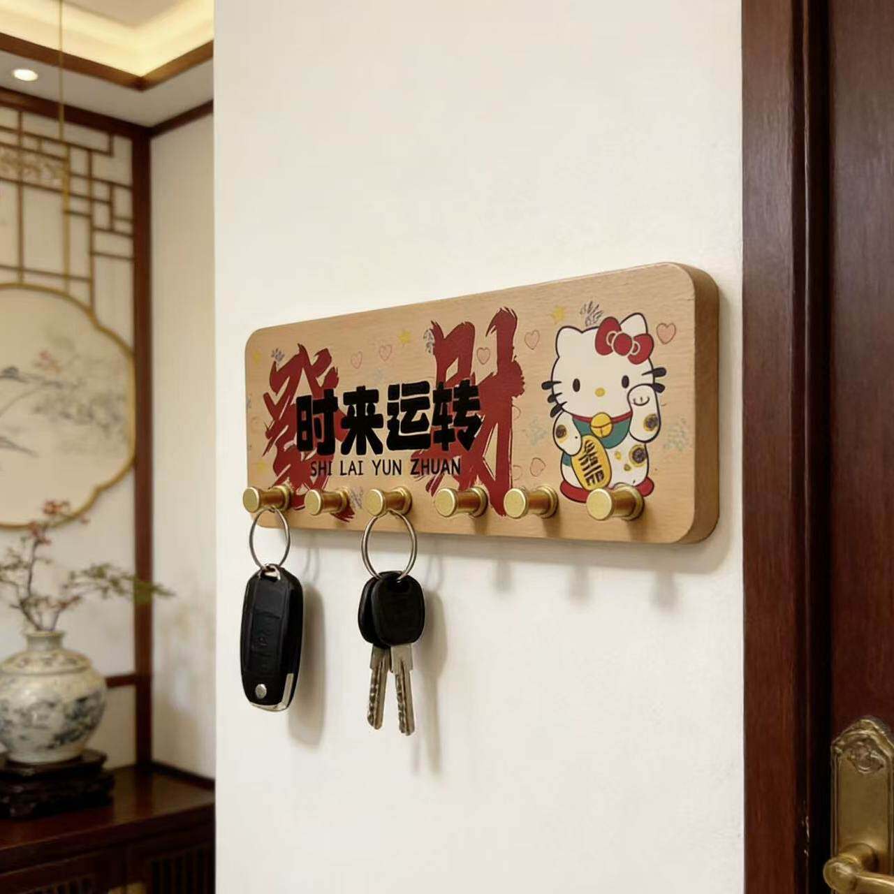 时来运转入户玄关钥匙收纳挂架免打孔门后挂钩新中式排钩客厅挂钩