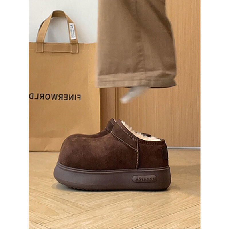 低帮厚底雪地靴女2025新款冬季懒人一脚蹬毛毛棉鞋加绒加厚女鞋子