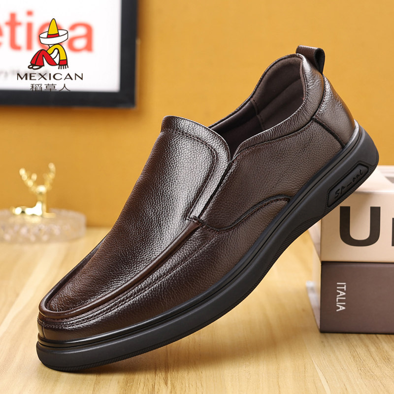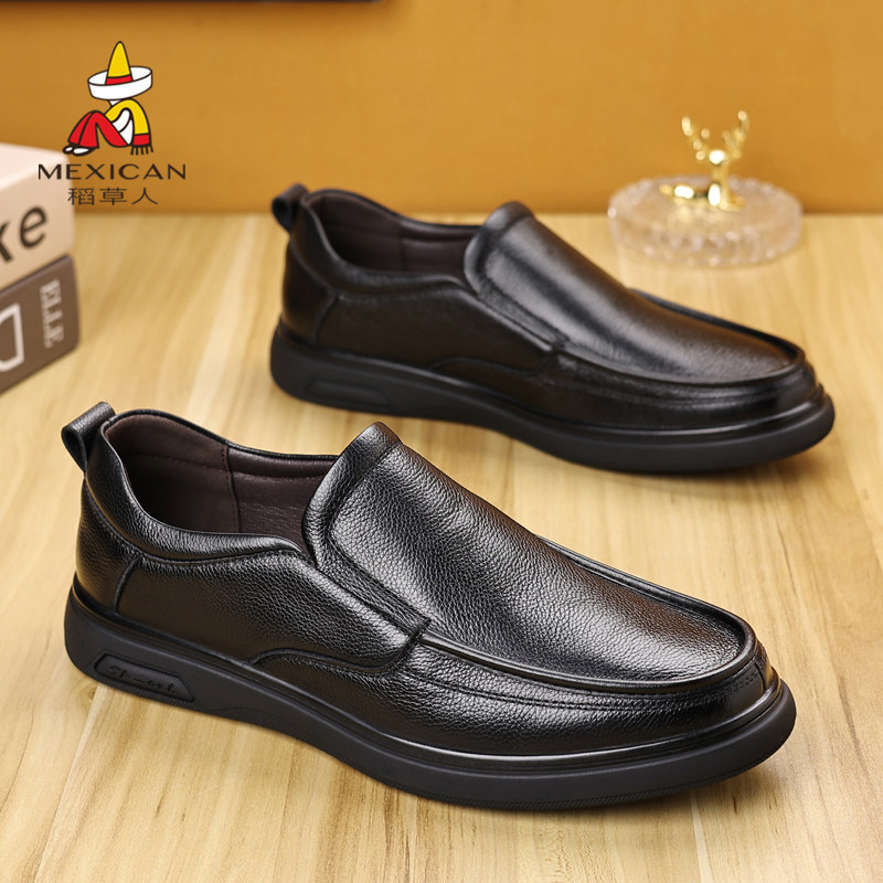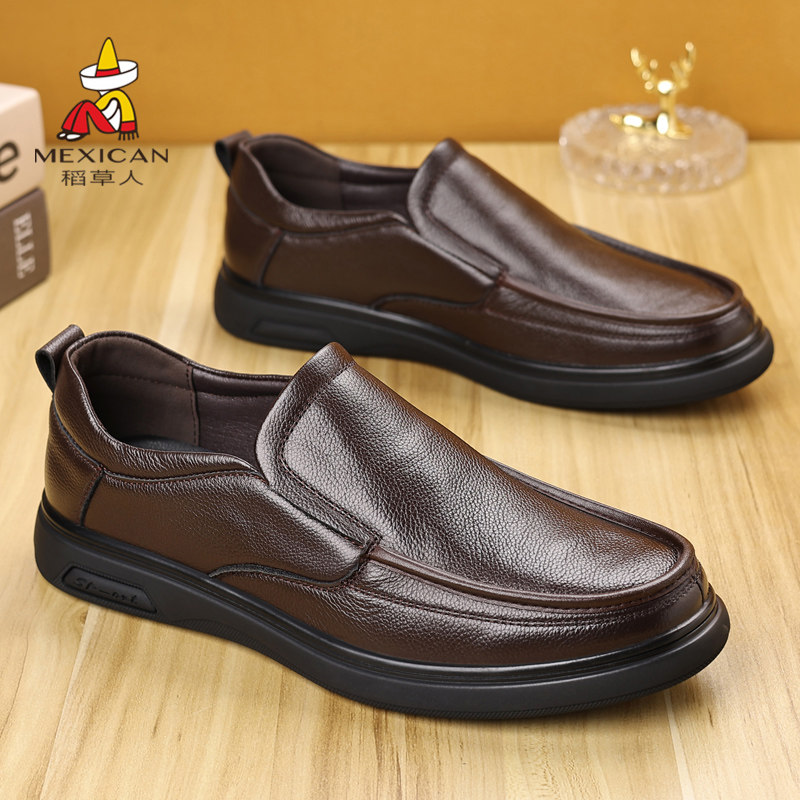 稻草人休闲皮鞋男秋季圆头软皮百搭时尚男鞋懒人一脚蹬休闲爸爸鞋