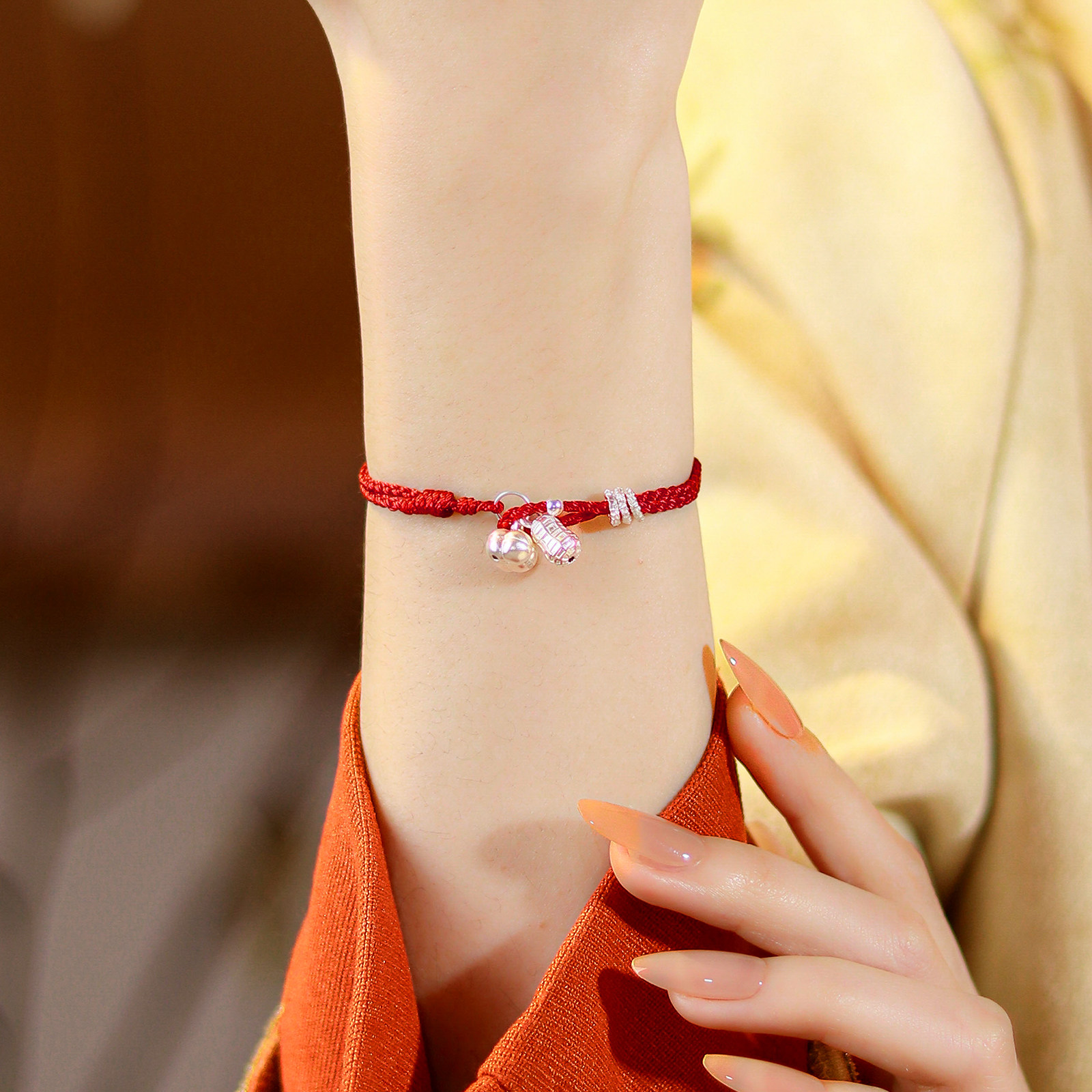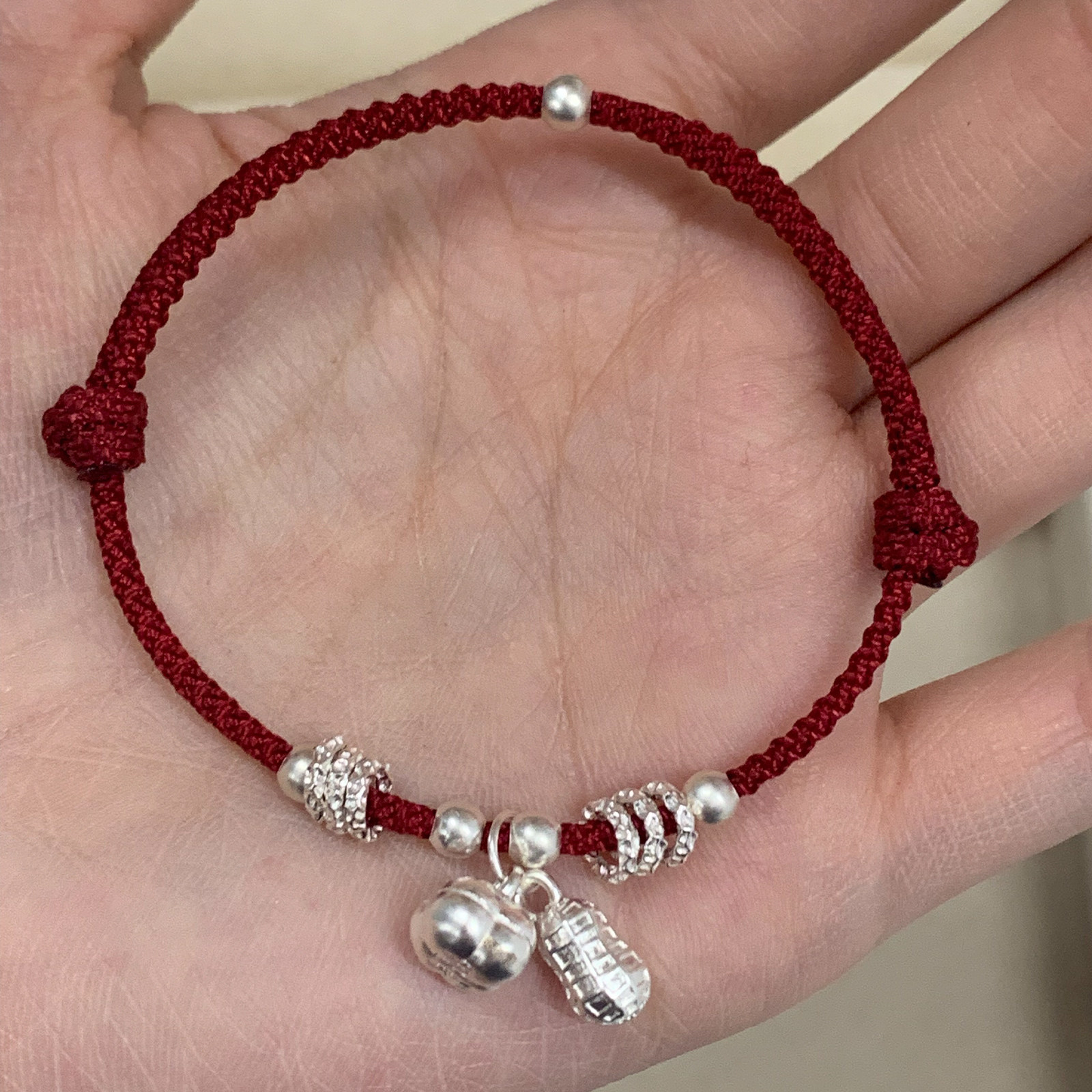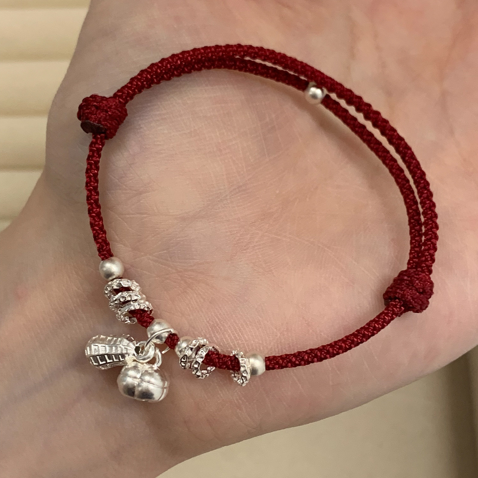 本命年红手绳手链柿柿顺心纯银999好柿花生编织轻奢小众精致足银