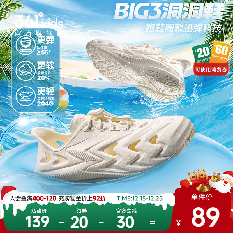 BIG3洞洞鞋|361°童鞋儿童凉鞋男童沙滩鞋2025年夏季新款溯溪鞋