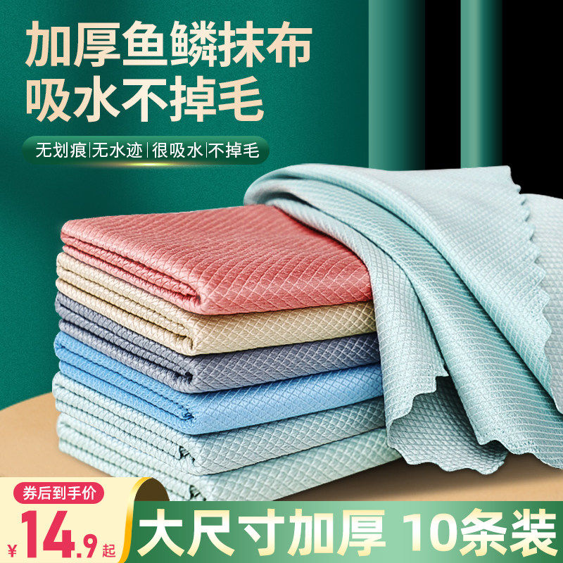 鱼鳞抹布加厚加大擦玻璃专用无痕保洁无水印厨房吸水不掉毛鱼鳞布