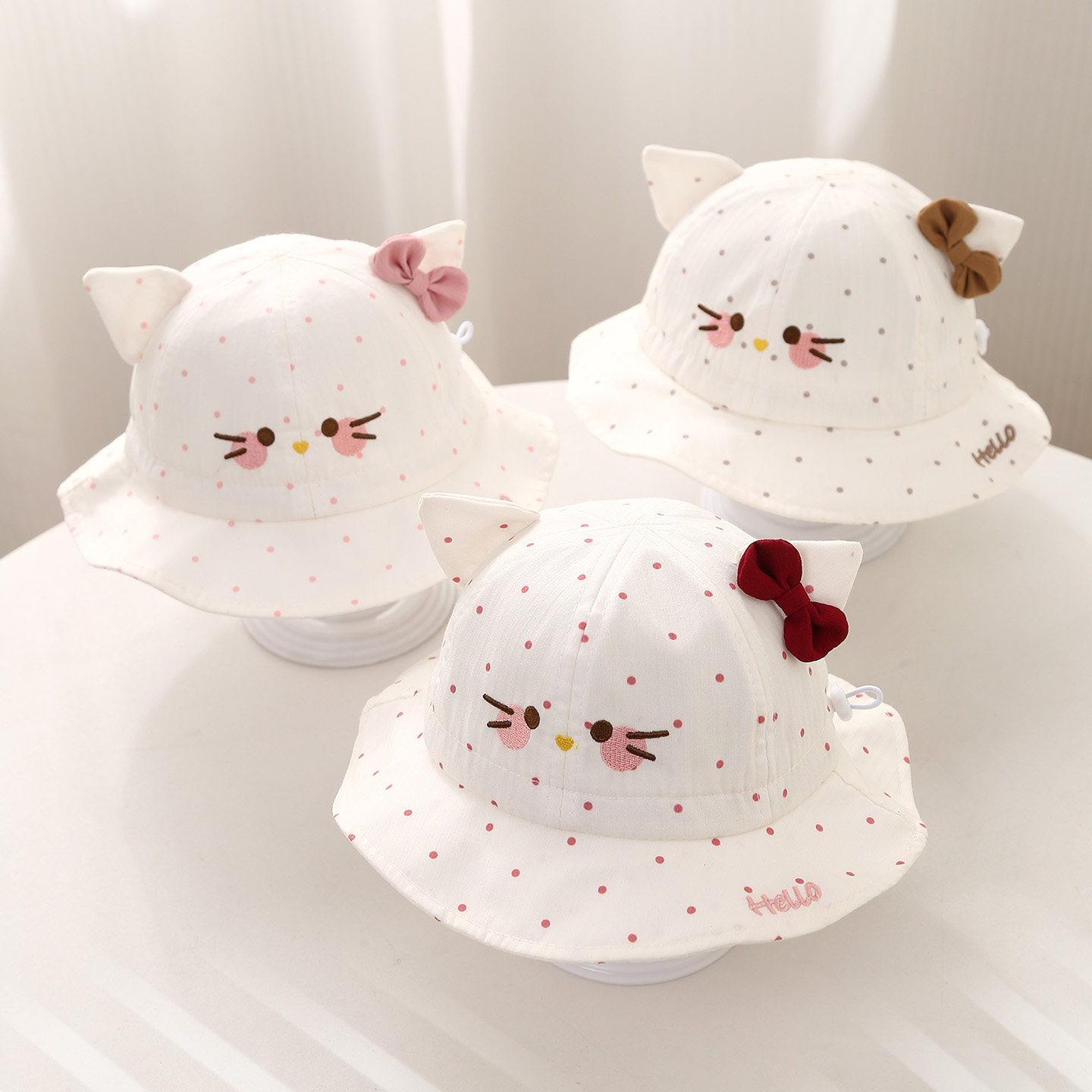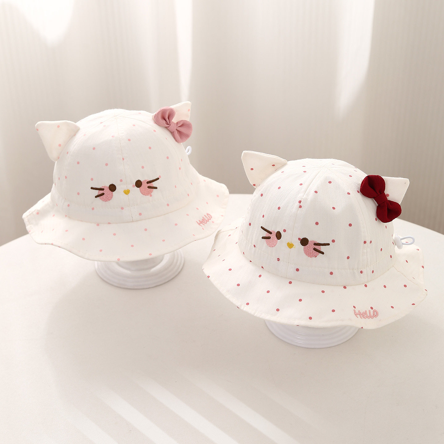 婧麒新生婴儿卡通渔夫帽男女宝宝遮阳防晒帽可调节小月龄外出帽子